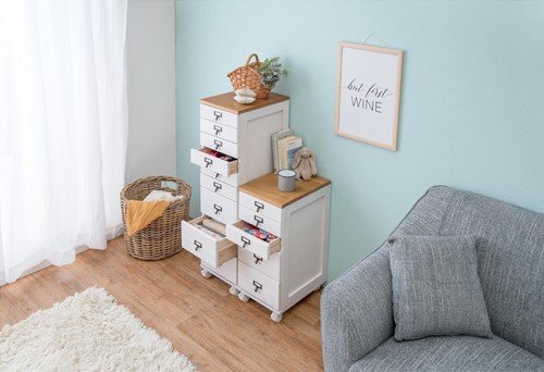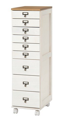 | 即決可@新品天然木キャスター付きチェスト9段/ナチュラルホワイト | ||||||||||||
