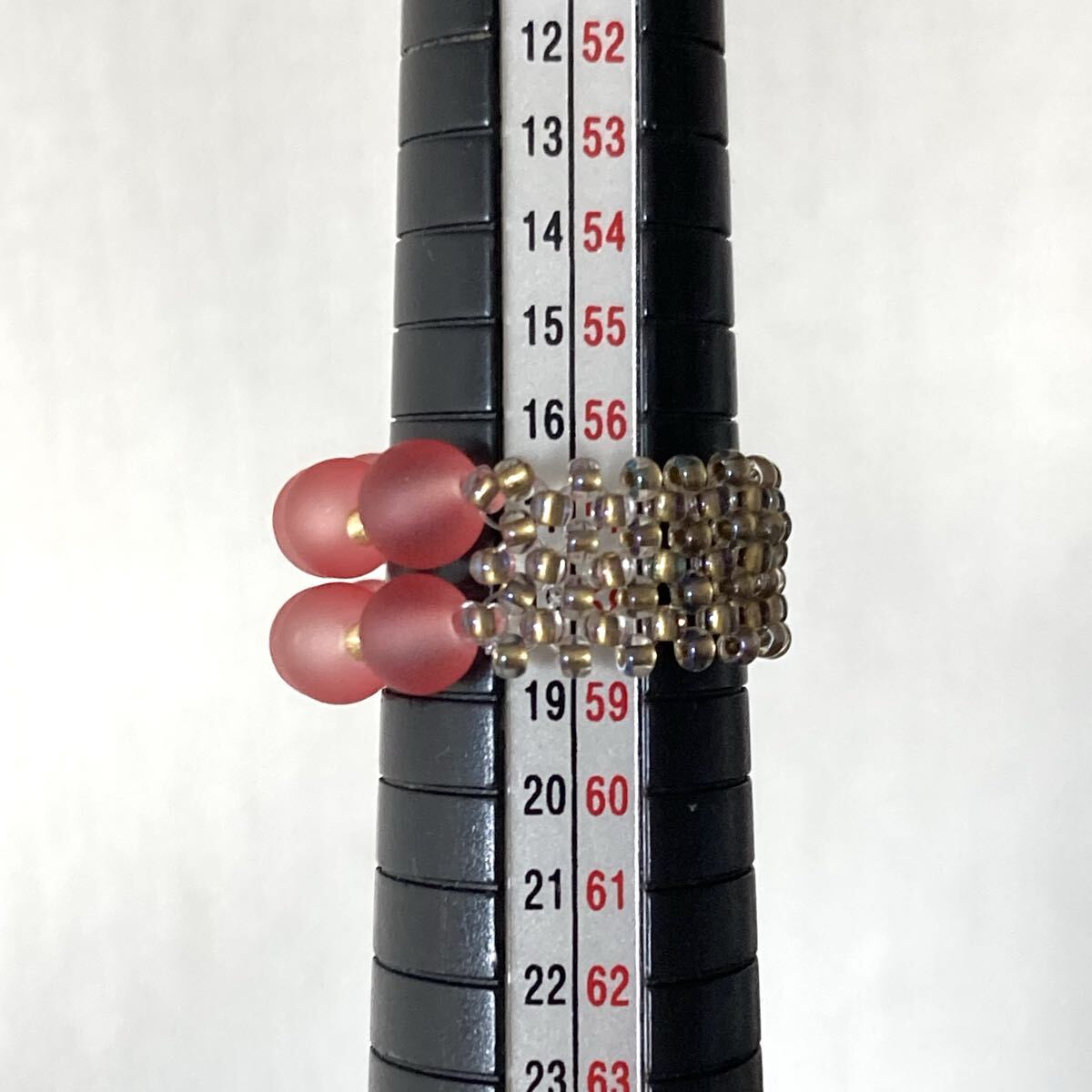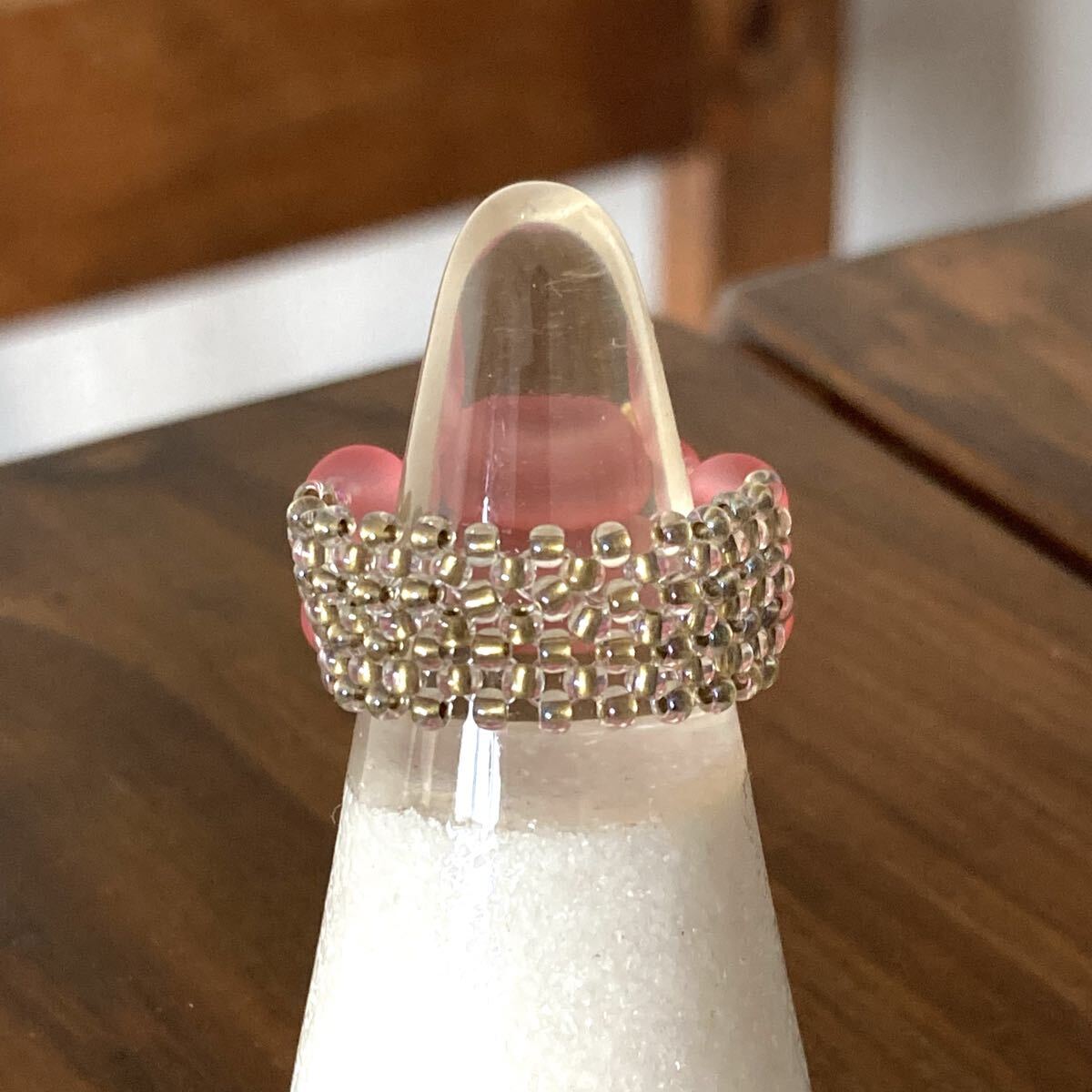 17-19号 ビーズ リング フロストビーズの2段リング ピンク×ゴールド