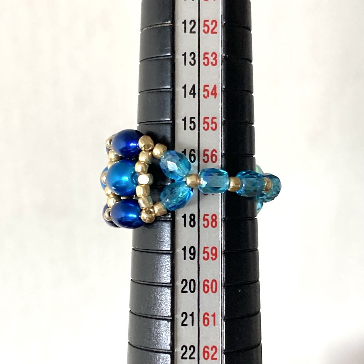 16-18号 ビーズ リング ナツメパールビーズの3段リング ブルー