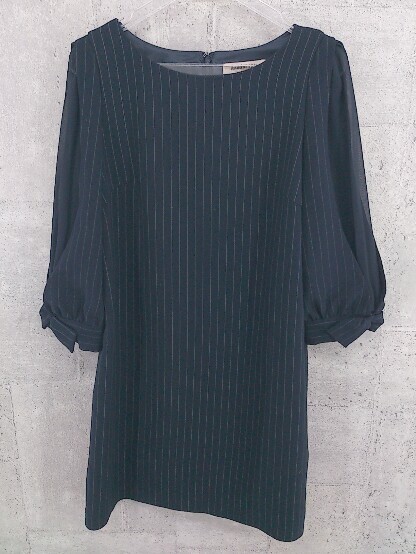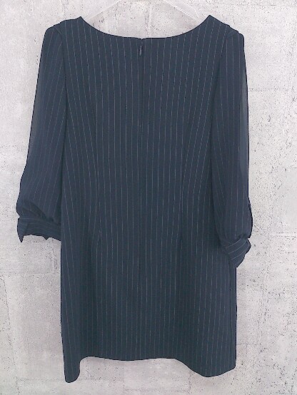 ◇ Apuweiser-riche アプワイザー リッシェ シャドーストライプ 七分袖 膝丈 ワンピース 2 ネイビー *