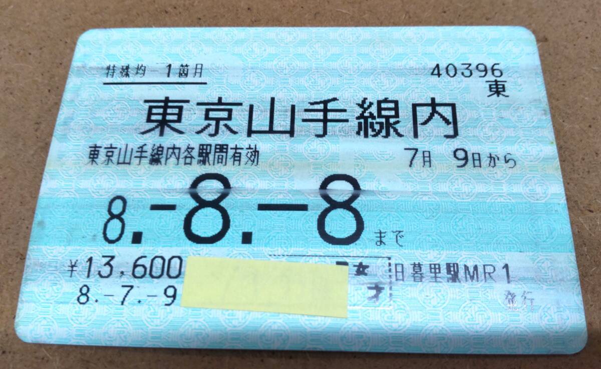DEA93    JR東 特殊均一定期券 【 東京山手線内① 平成8 磁気券 青緑帯 】