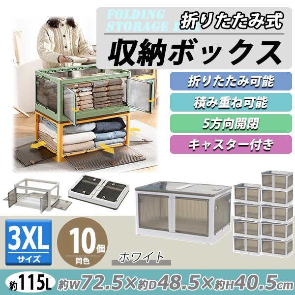 | 商品名 | 送料無料 収納ボックス 折りたたみ 10個セット 約72.5×48.5×40.5cm 3XLサイズ 115L キャスター付き 5面開閉 観音開き 積み重ね スタッキング クリア 透明 プラスチック コンテナ 衣装ケース 折畳み おしゃれ 収納 小物 おもちゃ 衣類 布団 stbox893xl10p |