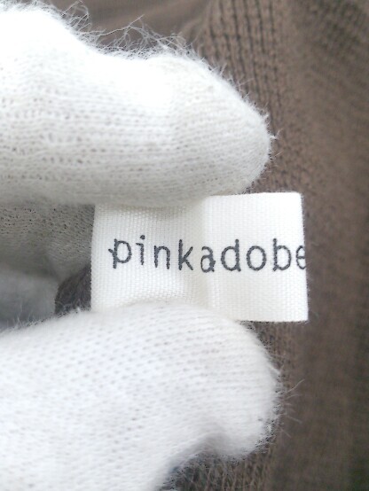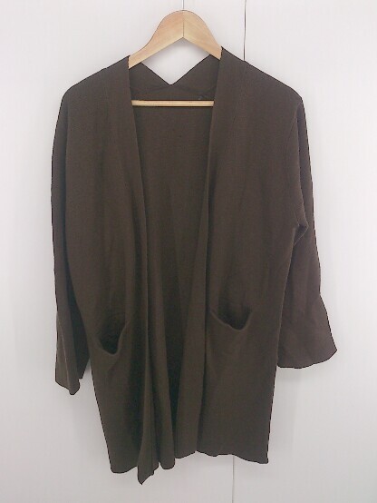 ◇ pink adobe ピンクアドベ カジュアル シンプル 無地 ニット 長袖 コーディガン サイズL ブラウン系 レディース E
