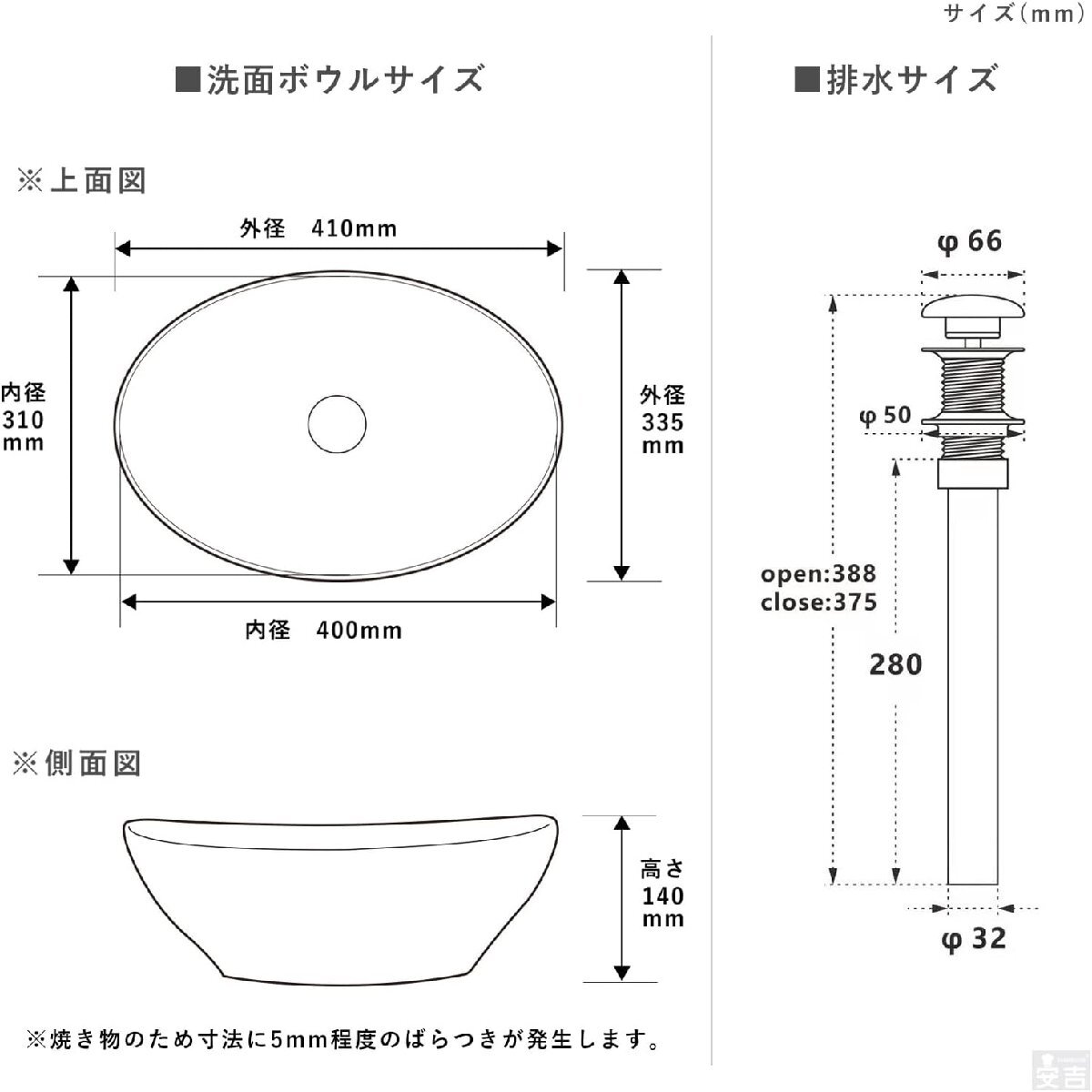 | 【中古美品】251022001 手洗い器 楕円型 41cm 洗面ボウル(手洗い鉢 排水栓・金具セット) |