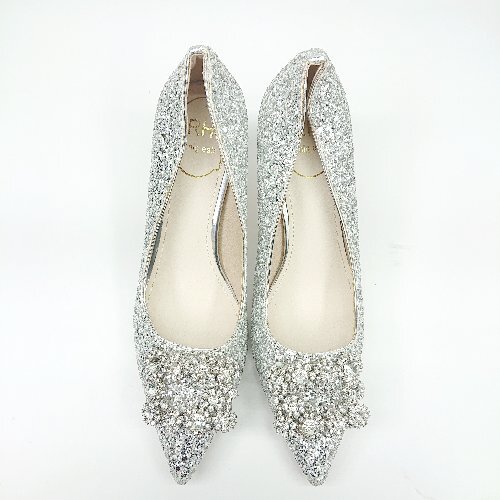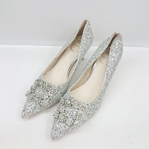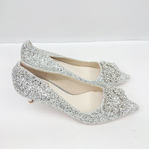 ◇ Θ runnig heels バックルビジューデザイン パンプス サイズ37 シルバー系 レディース E
