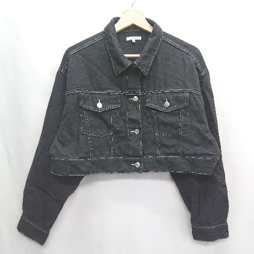 ◇ ⊇ FUN ファン 綿 クロップド丈 長袖 ジャケット サイズF ブラック レディース E
