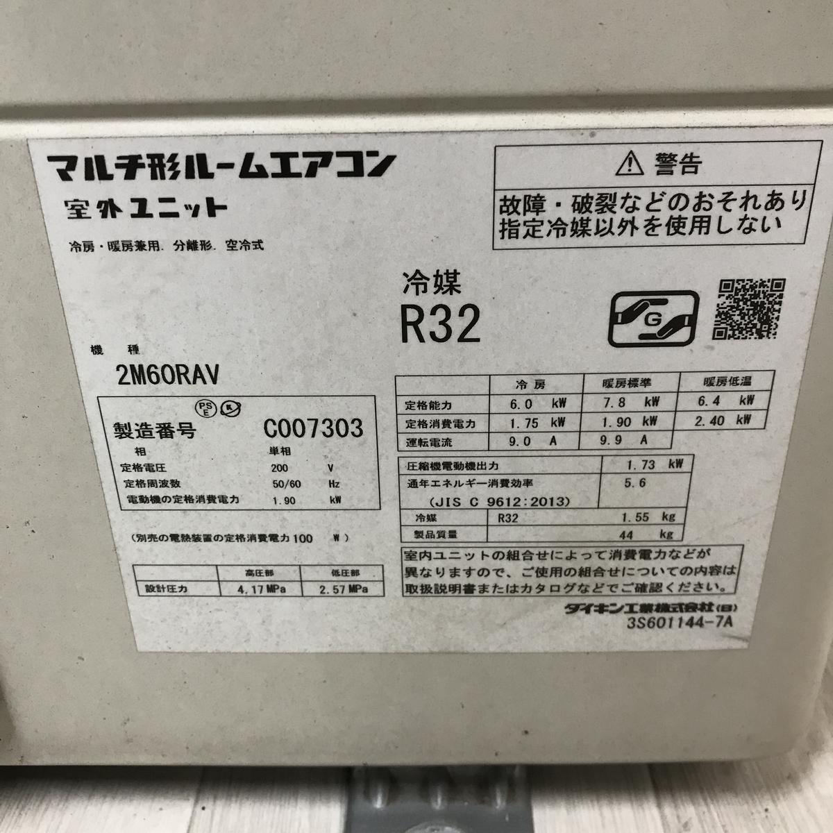 | 商品内容 ・2M60RAV サイズ 高さ595×幅910×奥行き342mm 重量 44kg 冷房能力 6.0(1.78~7.00)kW (木造17畳、鉄筋26畳程度) 暖房能力 7.80(1.96~8.90)kW(木造18畳、鉄筋20畳程度) ・C22RTV-W サイズ 奥行285×幅770×高さ233 室内機重さ 9kg 能力 2.2kW (6畳程度) 年式 2018年製 記載にない不具合があった際は送料+ご落札金額のご返金・返品とさせて頂きます。 取付工賃や発送時以外にかかった移送費等、 その他一切のご返金対応は出来かねますのでご了承の上でご入札をお願い致します。 | ||||||||||||||||||||