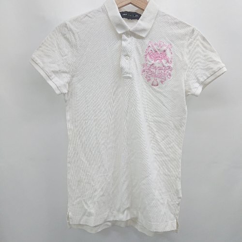 ◇ ⊂ RALPH LAUREN ラルフローレン 左胸ポニー刺繍 半袖 刺繍ポロシャツ サイズM ホワイト系 メンズ E