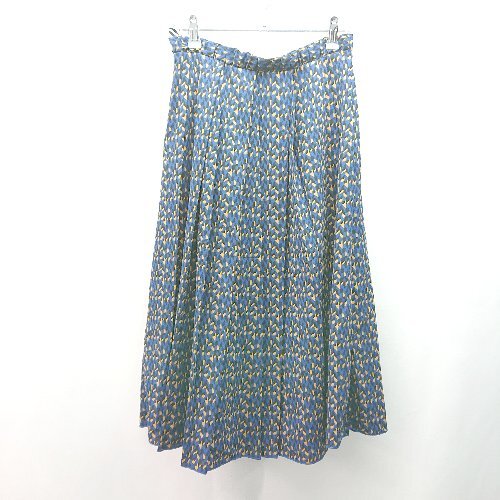 ◇ ViS ビス サイドファスナー マルチ柄 大人カジュアル ロング丈 フレア スカート 表記なし ブルー レディース E