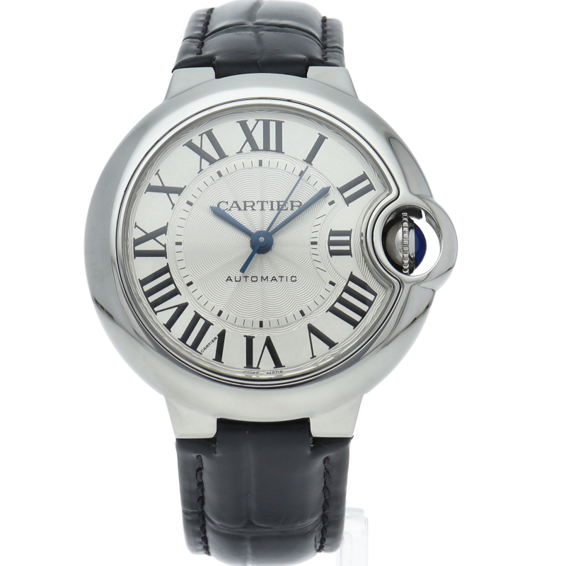 カルティエ バロンブルー ウォッチ 33mm オートマチック W6920085 箱 保証書 SS/革 レディース時計 ホワイト 仕