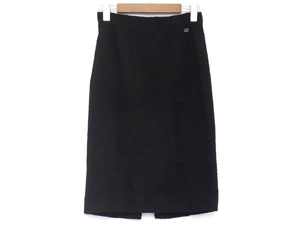 1円 ■美品■ CHANEL シャネル ココマーク ウール×ナイロン スカート ボトムス 表記サイズ36 洋服 レディース ブラック系 FM7955