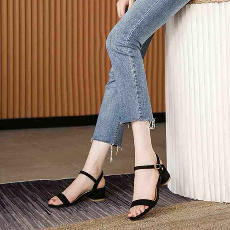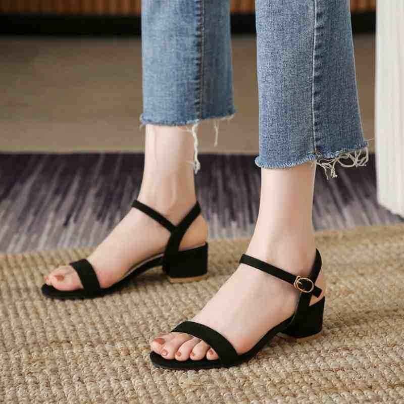 細いストラップとスエード調素材がエレガント ストラップサンダル