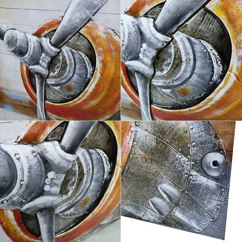 ![]() 木製のキャンバスに油絵と立体絵で装飾した、お洒落なアンティークテイストのアートパネルです。 プロペラはプラスチック製で木製のキャンバスに貼り付けられており存在感のある作りになっております。 一般的なアートパネルでは味わえない躍動感を感じて頂けます。 パネルに描かれた絵は油絵具を使用した油絵です。 油絵のアンティークな雰囲気がおしゃれです。 空間をオシャレに彩ります。自宅、カフェBARにも、 おすすめのインパクトあるデザインの木製アートパネルです。 フレーム部をひっかけるだけで画鋲などでも簡単に設置が可能。 商品詳細 サイズ(約):幅120cm*縦82cm*奥行5cm 重さ(約):5.3kg 素材 ・杉材(本体) ・油絵具 ・プラスチック(立体部分) ・プレート(アルミ) |
