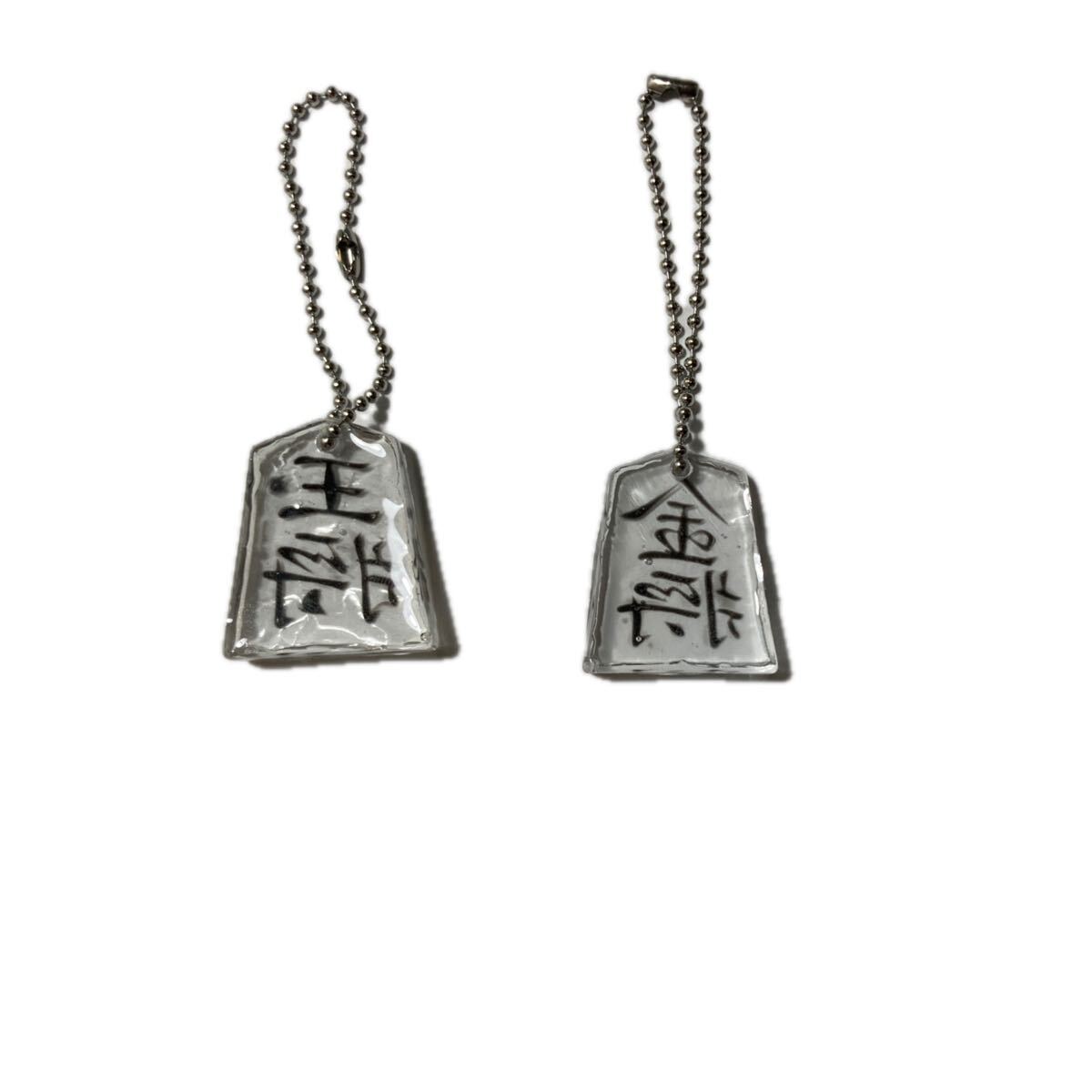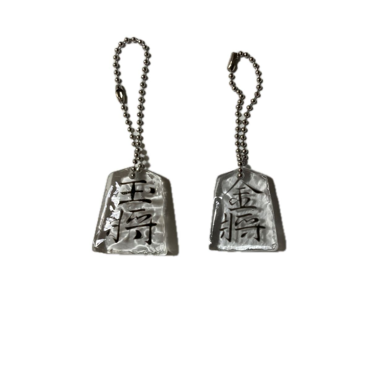【ハンドメイド】クリアレジン将棋駒キーホルダー 玉将・金将 2点セット 新品