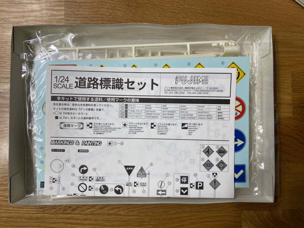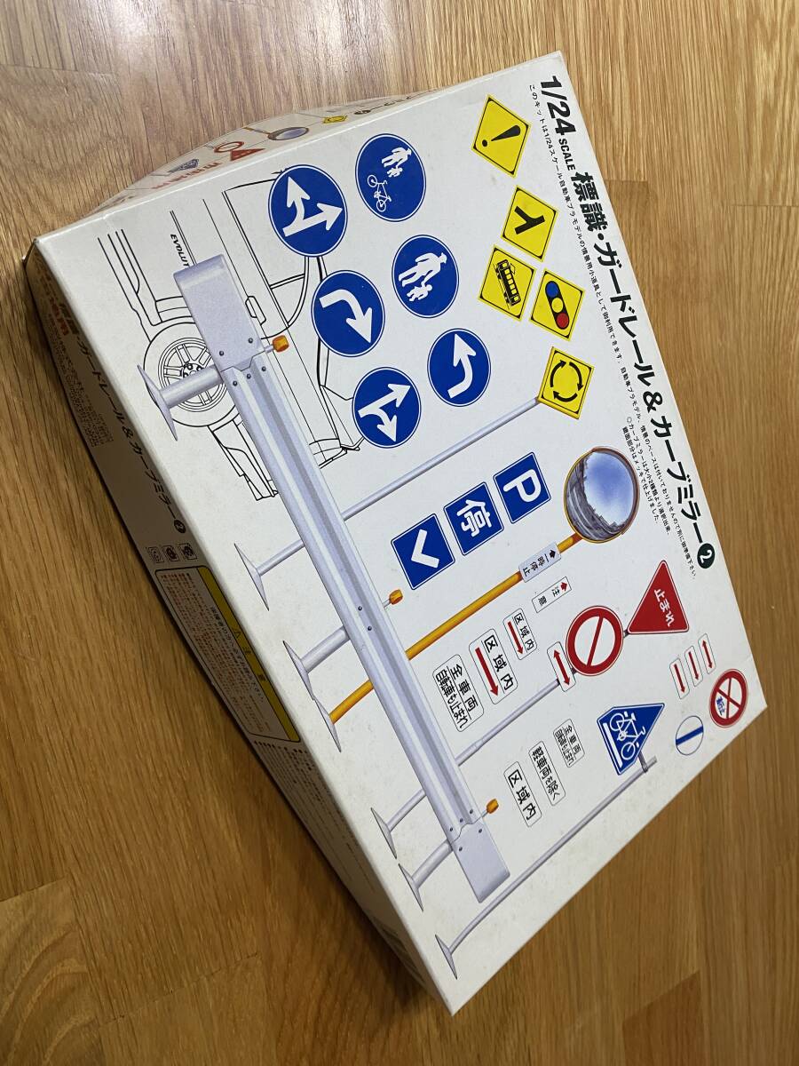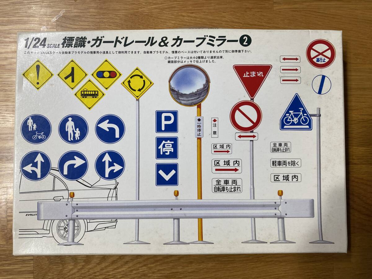 フジミ模型1/24スケールの標識、ガードレール&カーブミラーセット 未組み立て品です。