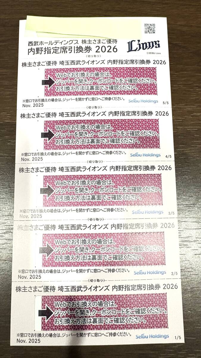 西武ホールディングス株主優待内野指定席引換券5枚です。