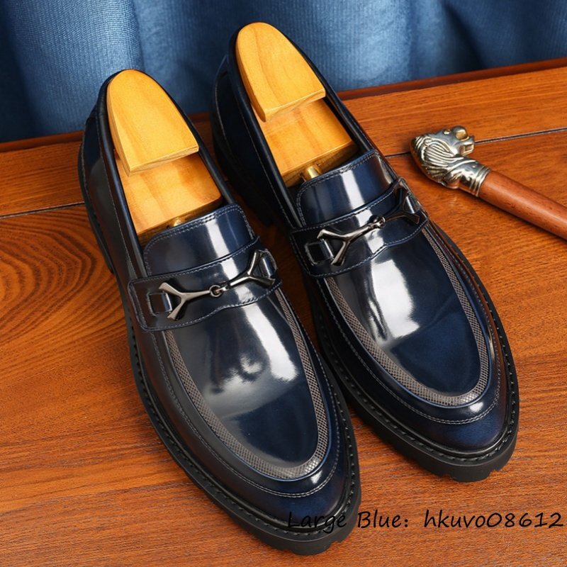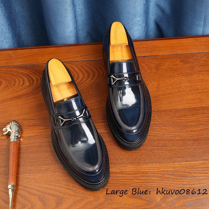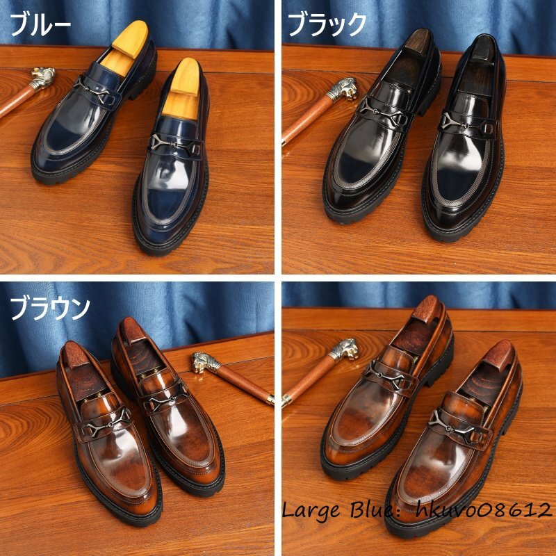 最高級★定価9万 本革 ビジネスシューズ ハンドメイド レザーシューズ 牛革 職人手作り 手塗り上げ 紳士靴 フォーマル革靴 ブルー 24.5cm