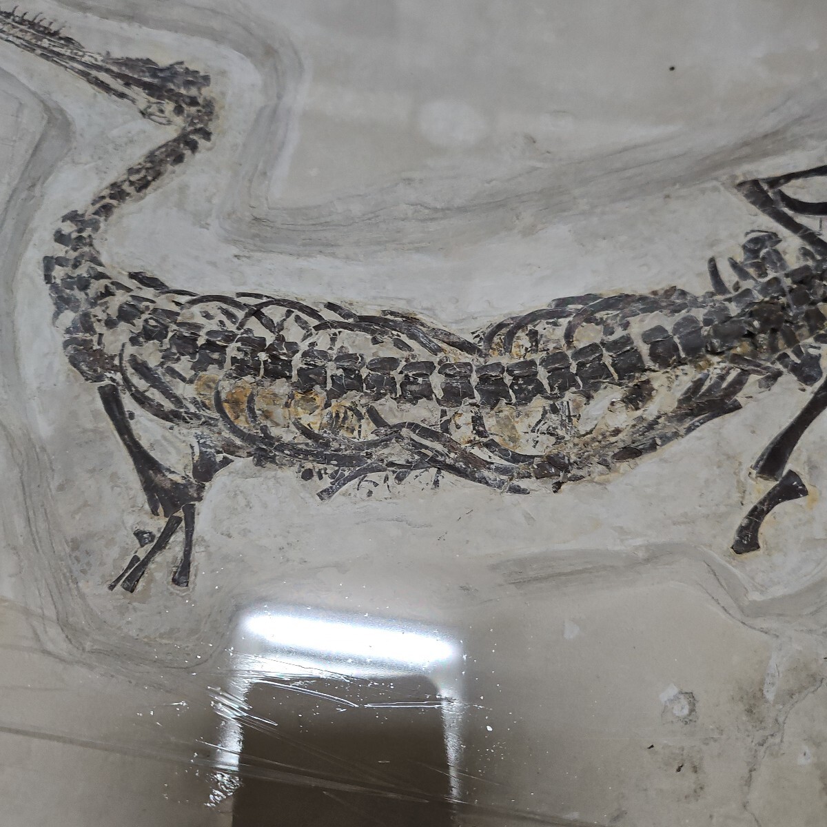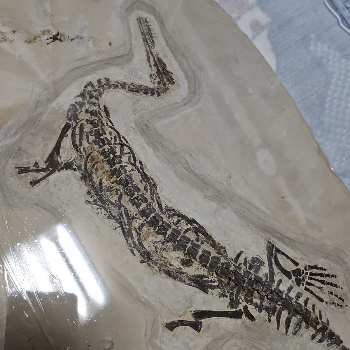 メソサウルス(mesosaurus)は、古生代ペルム紀前期(約2億3000万年前)にアフリカと南アメリカが分裂していなかった頃、その境にあった湖に生息していたと推定される水生爬虫類です、