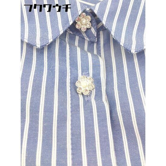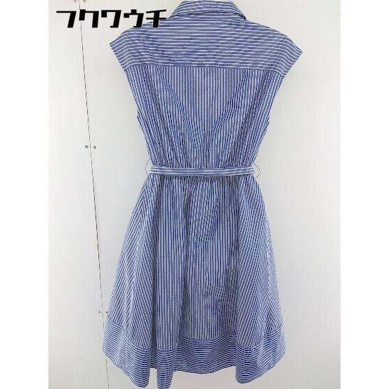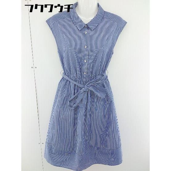 ◇ ◎ Couture brooch ビジュー ストライプ ノースリーブ 膝丈 シャツ ワンピース サイズ 36 ネイビー ホワイト レディース
