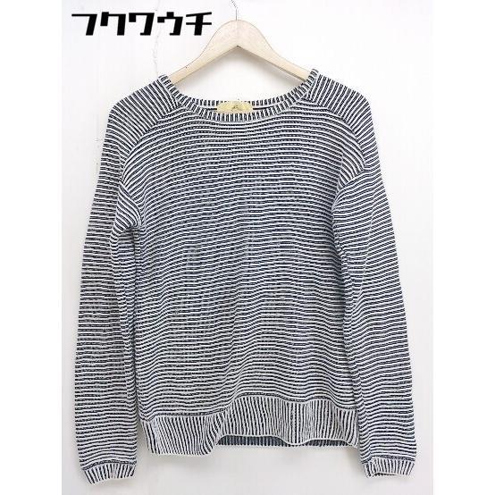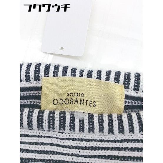◇ STUDIO ODORANTES スタンドカラー ボーダー コットン ニット 長袖 トレーナー サイズ F ホワイト ブラック レディース