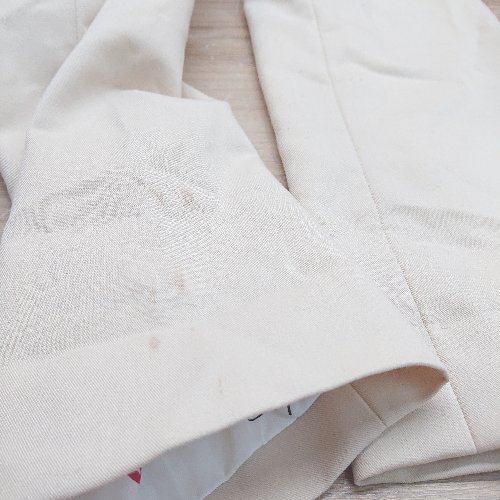襟、内側襟元、ベルト、肩袖に汚れあり