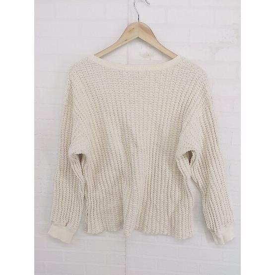 ◇ Ray BEAMS レイ ビームス キーネック ワッフル風 長袖 カットソー プルオーバー アイボリー レディース P