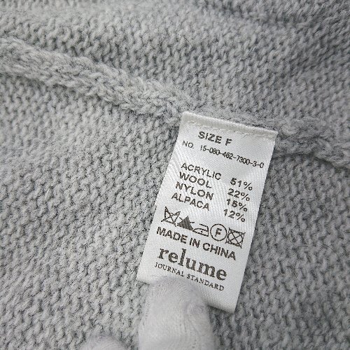 ◇ ⊇ JOURNAL STANDARD relume フード付き 長袖 ニットカーディガン サイズF グレー レディース E