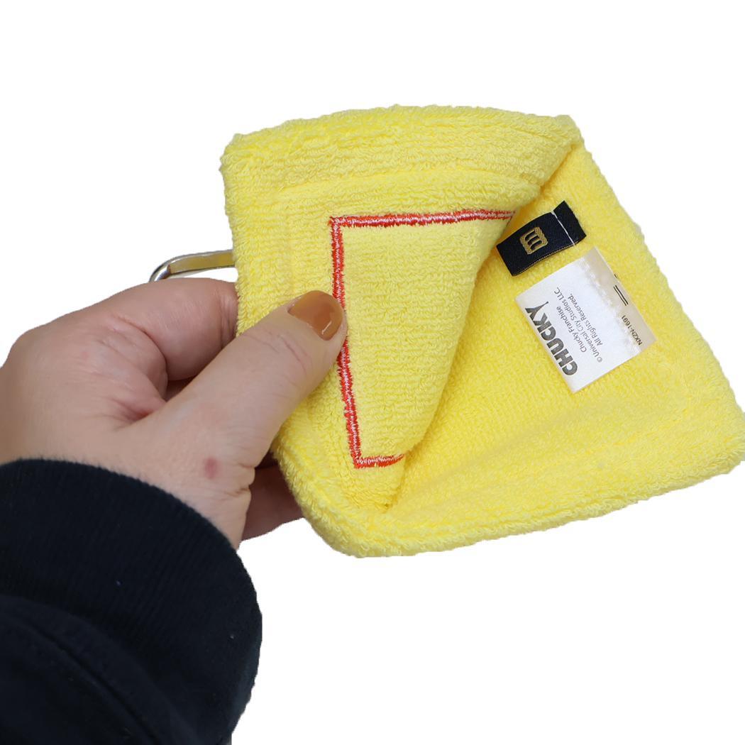 ゴルフボール1個分のサイズ感で使いやすいクリーナー ホラームービーで人気の[CHUCKY/チャッキー]グッズにまたまた可愛いnewアイテム登場こちらは使いやすい[クリーナータオル]ゴルフボール1個分のサイズ感で、使用中にボールを落としにくい袋型となっておりますカラビナが付いているので、ウェアやキャディバッグなどお好きな所に付けられて便利ですほかにもいろんなグッズがあるのでお気に入りをみつけてくださいサイズ:約100x100mm素材:綿