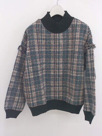 ◇ CPCM シーピーシーエム ツイード系 モックネック 長袖 トレーナー サイズF ブルー グリーン マルチ レディース E