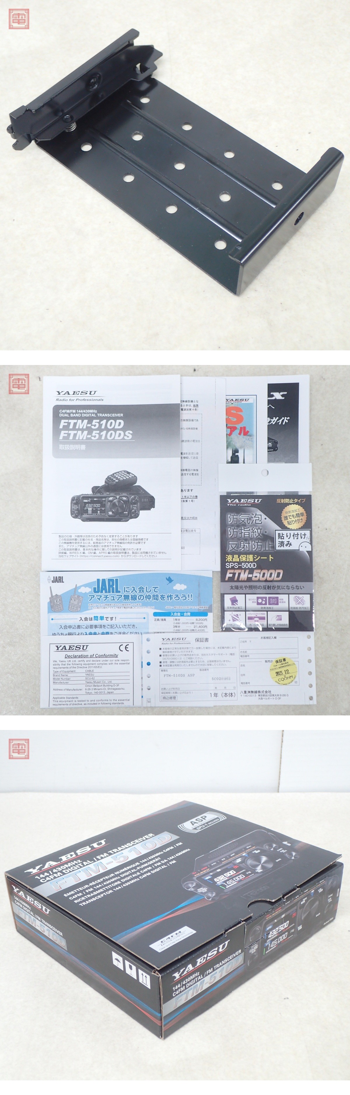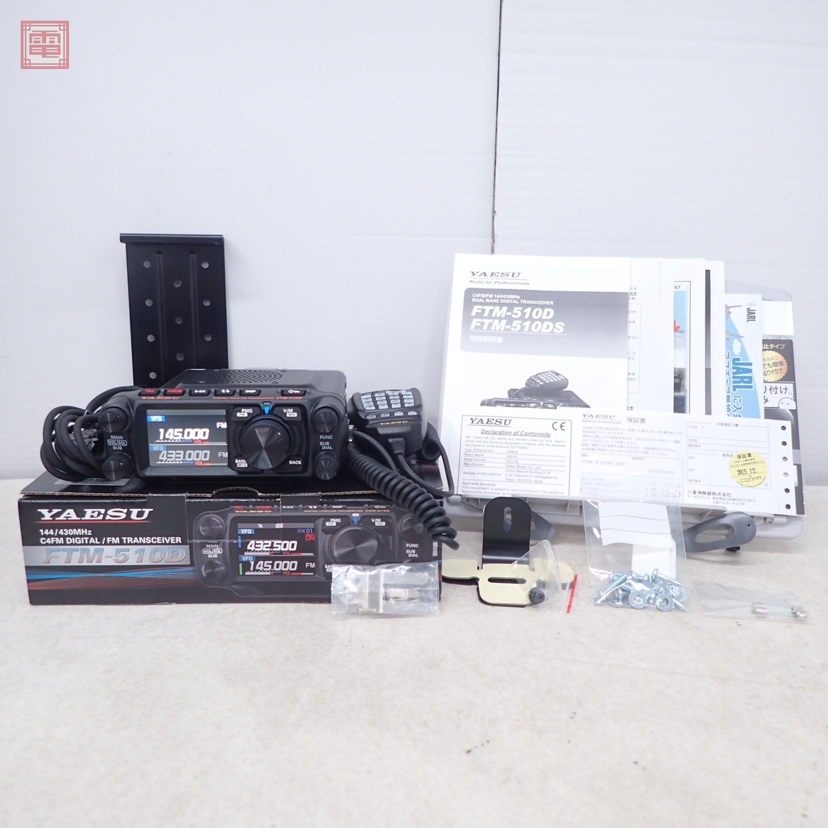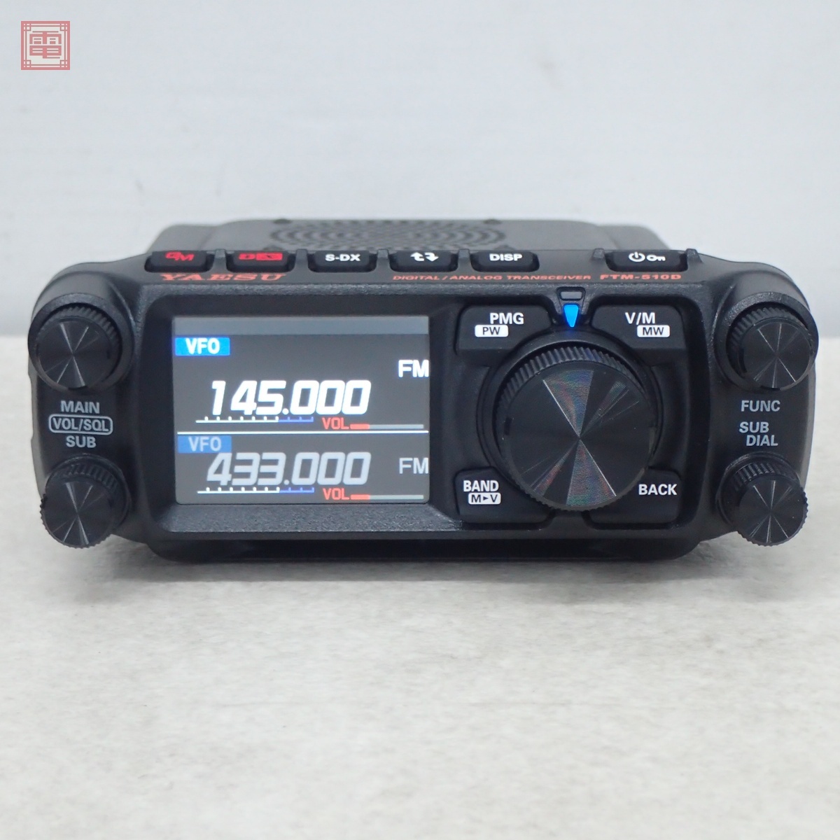 保証残約11ヶ月有 美品 ヤエス FTM-510DS エアーバンドスペシャル 144/430MHz 20W/10W/1W セパレートケーブル・取説・元箱付 八重洲 ■<出品物> ・本体 ・DCコード ・マイク ・セパレートケーブル ・保証書(保証期限内) ・取扱説明書 ・元箱 ★内蔵オプション ・MMB-103 ※上記以外の付属品は写真にてご確認ください。 ■<送信について> ・手持ちの終端型電力計で測定した所、下記の通りでした。 ★144MHz :【H】 約 20W 【M】 約 10W 【L】 約 1W ★430MHz :【H】 約 20W 【M】 約 10W 【L】 約 1W ■<受信について> ・手持ちの無線機を使用して確認した所、各バンドとも受信出来ました。 ・アンテナに接続し、エアーバンド(120.5MHz)の受信を確認しました。 ■<状態> ・オールリセット済みです。 ・ボリュームにガリはありません。 ・ファームウェアのバージョンは写真にてご確認ください。 ・本体に目立つキズも無く、比較的キレイな状態です。 ・タバコ臭はありません。 ※スプリアス規格や確認保証に関しましては、総務省やJARDの公式ホームページにてご確認をお願い致します。 ■写真のものが全てです。付属物の有無や状態については写真からご判断ください。 ■付属物については細かいチェックはしておりませんので、万が一、欠品があったり余計な物が入っていたとしてもご了承ください。 ■商品到着後、当店の保証期間中は、商品及び箱や取説、付属品などを1つでも廃棄や破損をしないようにお願い致します。廃棄や破損をした場合、商品に問題があった場合でも対応や返金などの対処ができなくなります。 ■商品によりますが、発売されてから10年以上経過している中古品である事をご理解頂いた上でご入札をお願い致します。なお、新品や美品、また特記事項がある場合は別途明記します。 | |||