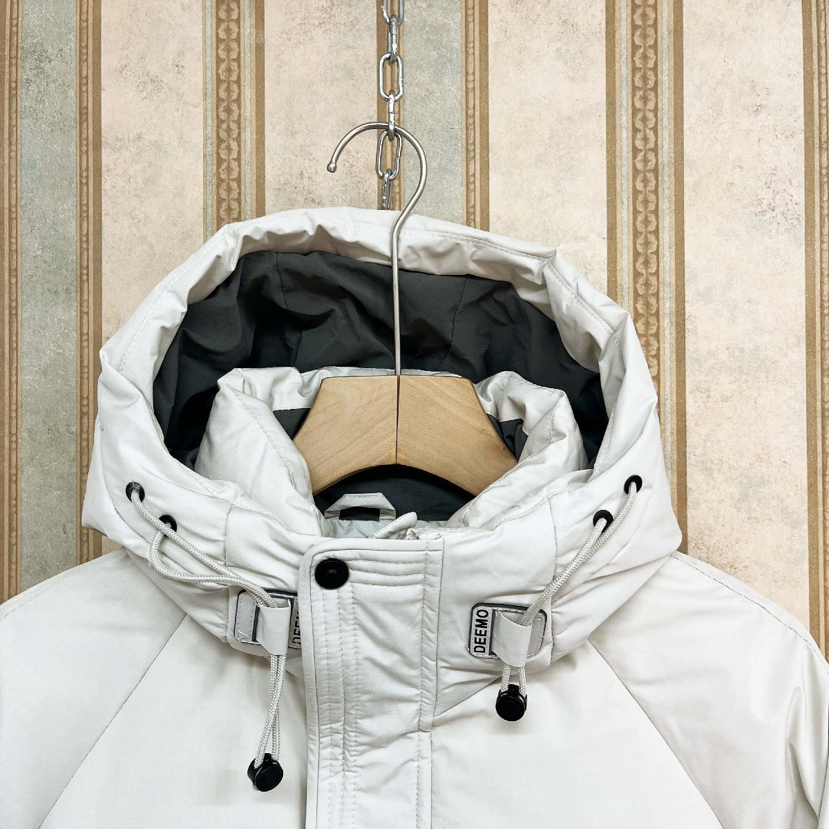 フード付き・立ち襟デザインで頭や首元までカバーし、風の侵入を防ぎます。左袖のアクセントデザインがシンプルながら個性を演出。フロントはダブルジッパー+ボタン留めの二重構造で、防風性と保温性を両立。両サイドポケット付きで手や小物の収納にも便利です。
