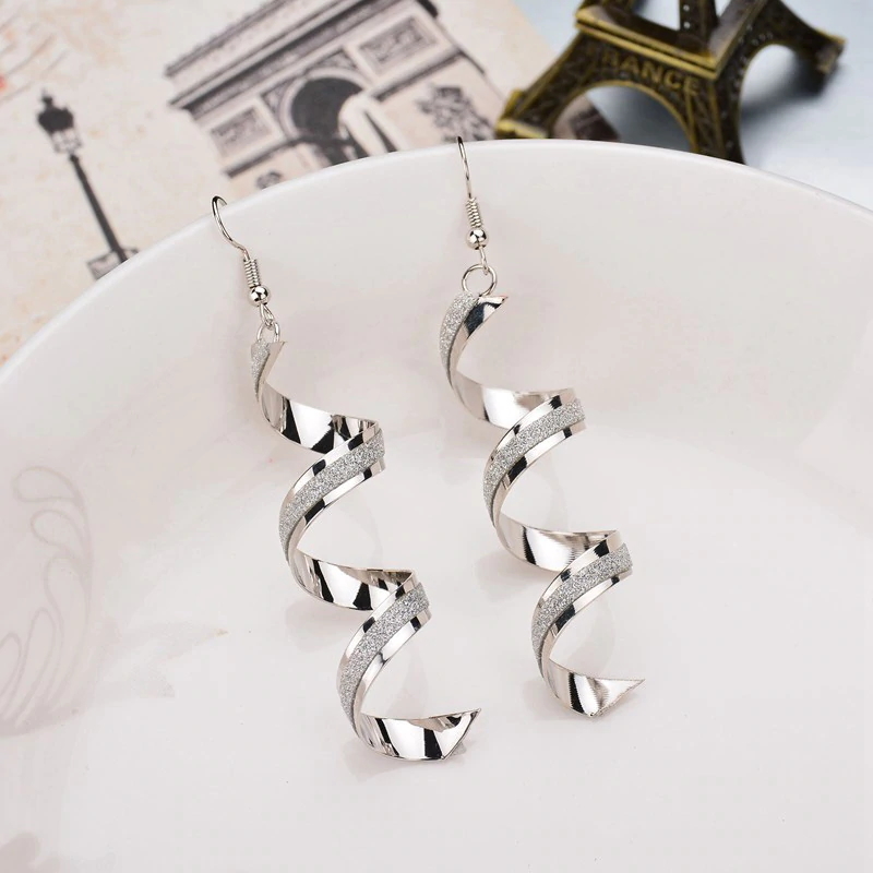 世界流行●ツイストスパイラル ドロップピアス★クラッシュラインストーン★シルバー