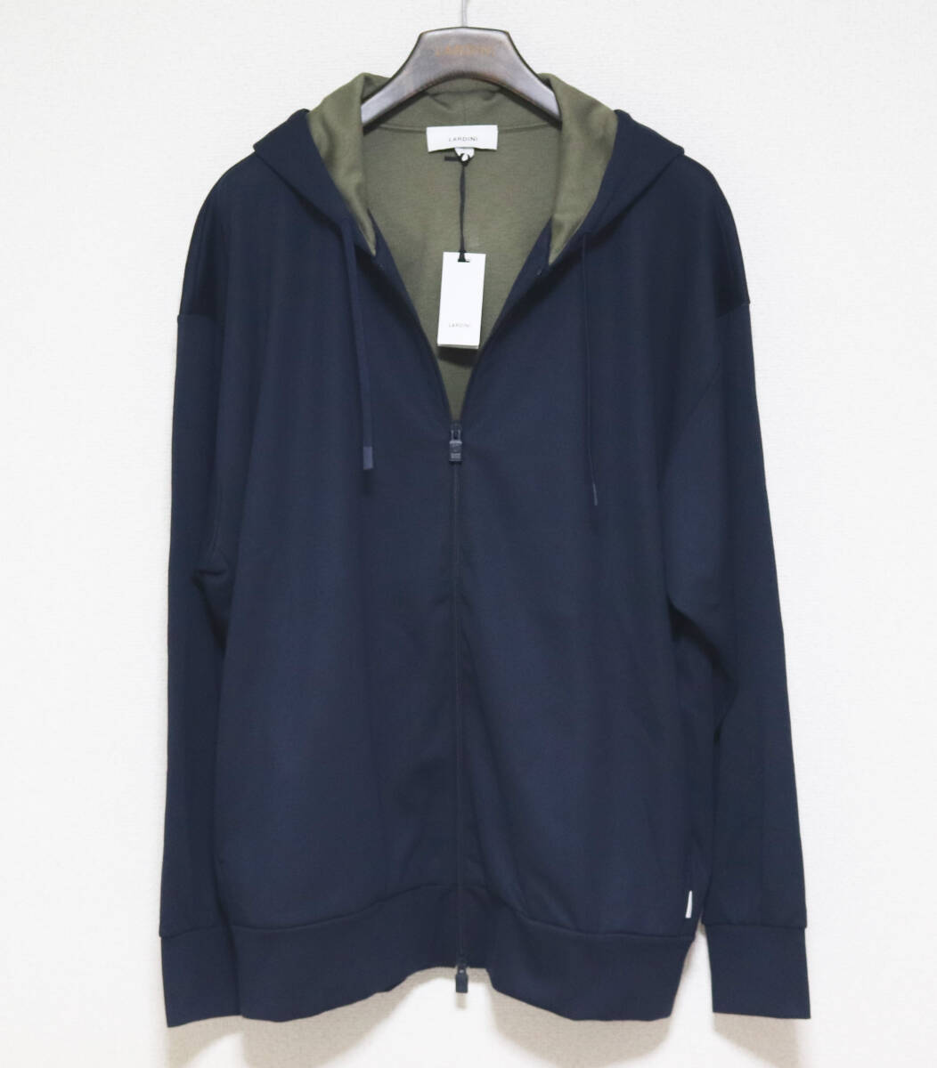 | 89,100円新品タグ付き【LARDINI ラルディーニ】ダブルフェイス ジャージーフーディー ジップパーカー 紺 XL v7829-2309 |
