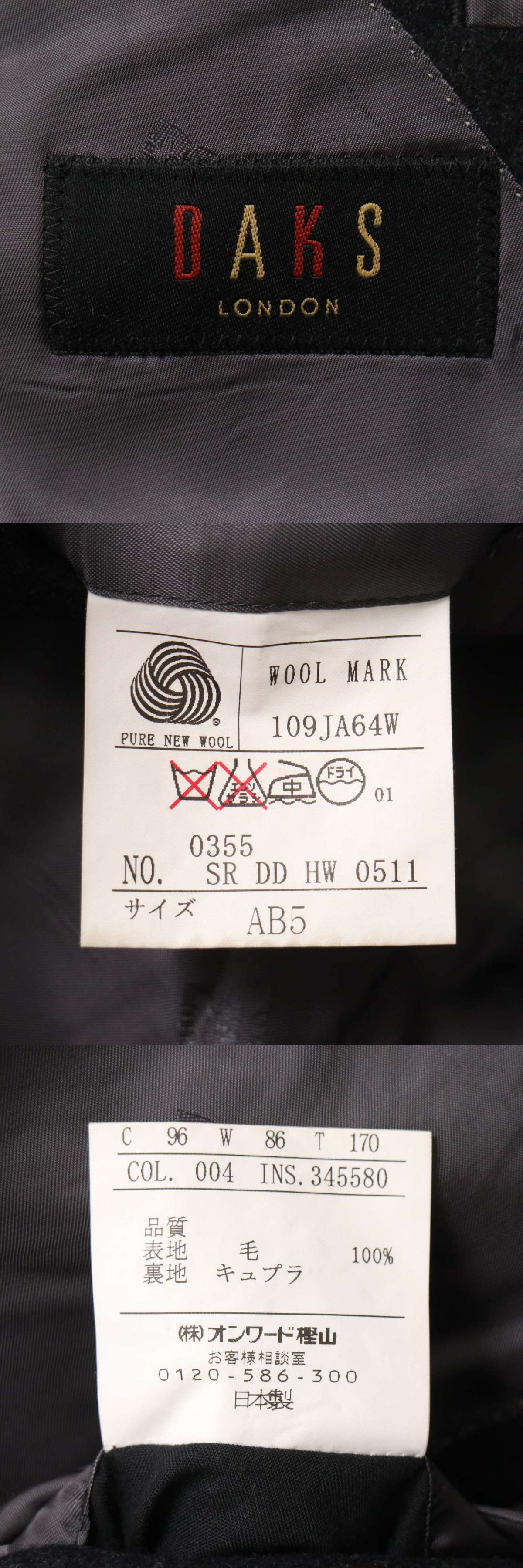 DAKS ダックス 秋冬★ ウール100% テーラード ジャケット Sz.AB5 メンズ グレー 濃灰 日本製