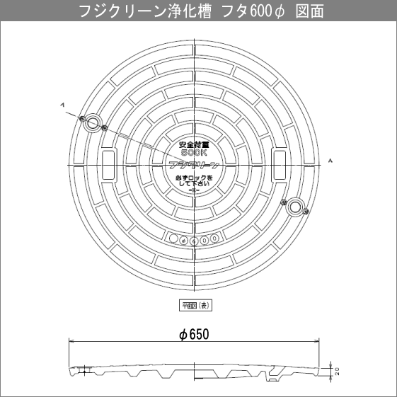 フジクリーン 浄化槽 マンホール 蓋(フタ) 600φ(実寸:650mm) 500kg