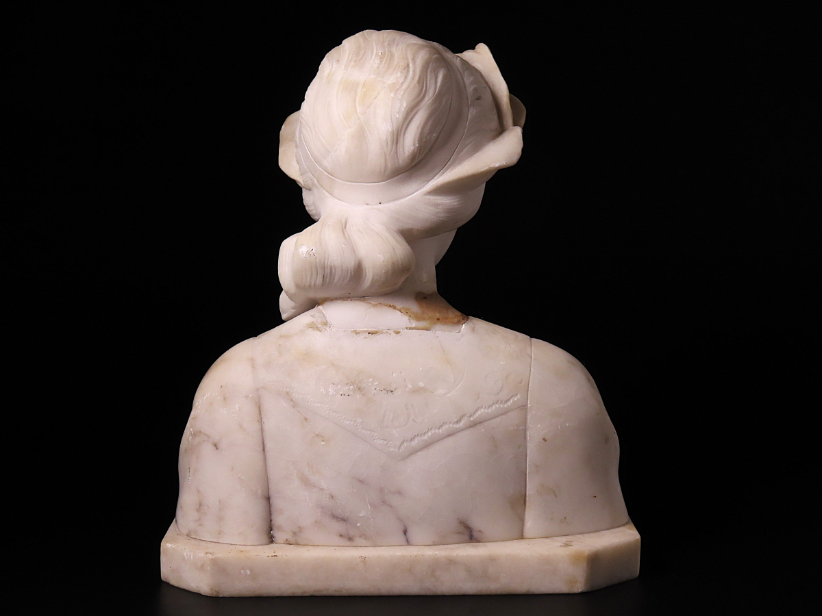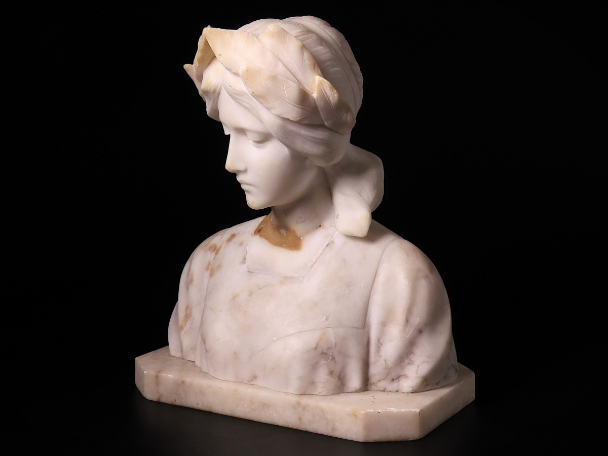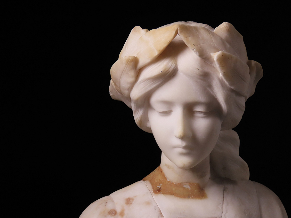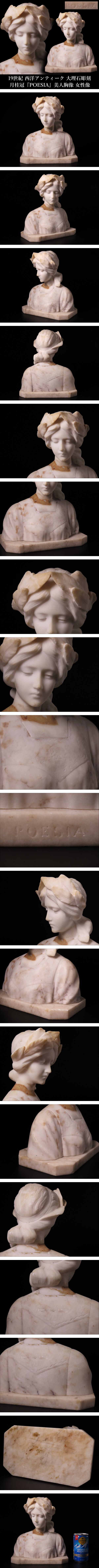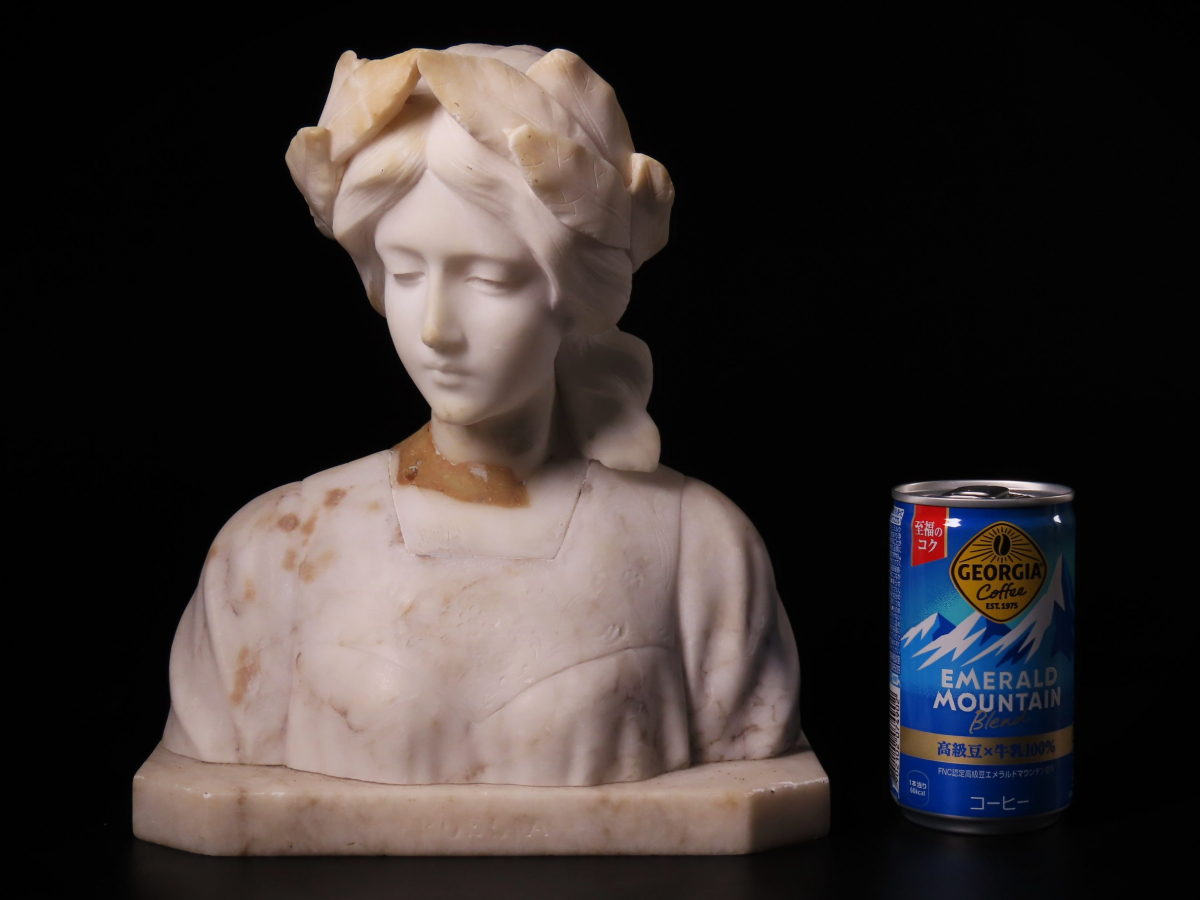 【ONE'S】19世紀 西洋アンティーク 大理石彫刻 月桂冠 『POESIA』 美人胸像 女性像 高22.5cm 重量3.5kg 西洋美術 | |||