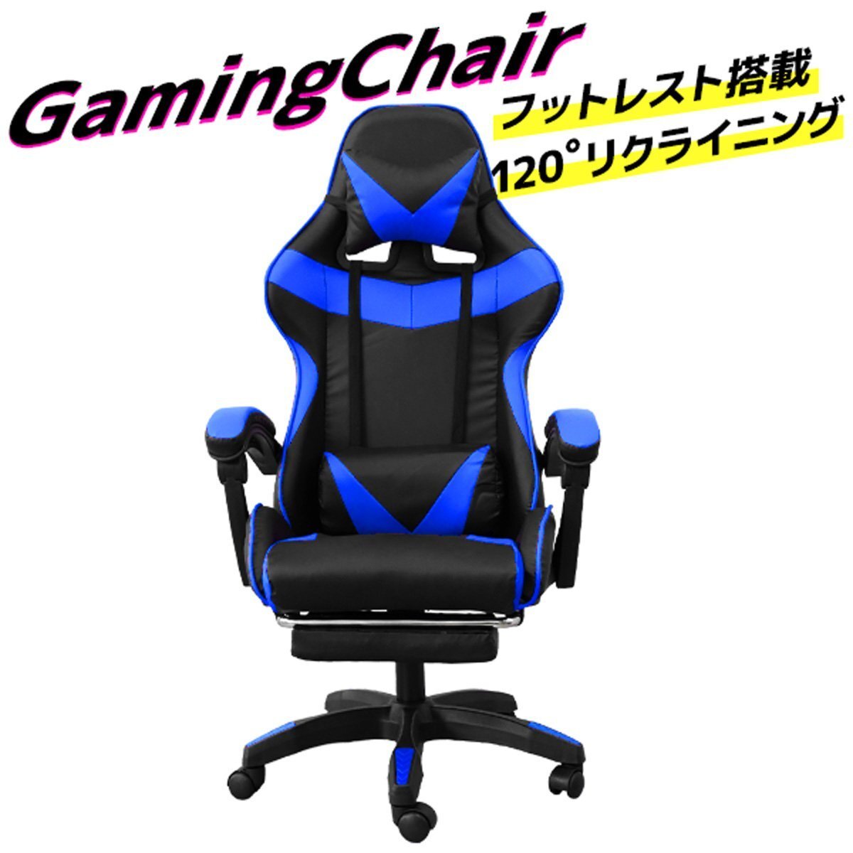 | ゲーミングチェア ブルー 120度 リクライニング使用 フットレスト付き 合成レザー素材を使用したゲーミングチェア。 足先までゆったりくつろげる、フィット感抜群のゲーミングチェアです。 体をすっぽり包み込むバケットシートデザインで、綺麗な姿勢を保ちます。 頭部と腰部をサポートするクッション付きで、長時間座りっぱなしでも疲れにくいフィット感です。 背もたれは最大約120度まで、座面の高さは最大約13cmまで スムーズに調節できます。 |