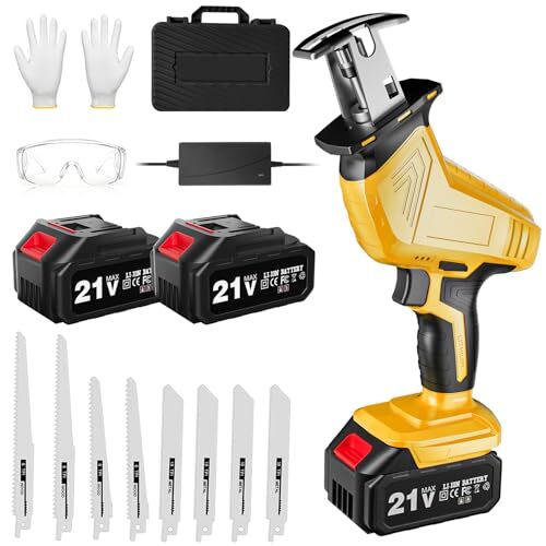 電動ノコギリ 充電式 レシプロソー 2個バッテリー付き & 8枚の高炭素鋼のノコギリ刃 軽量 小型 枝切り 竹を切る 庭木の剪定