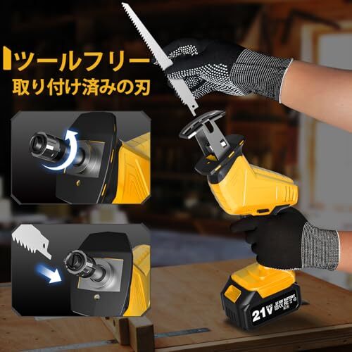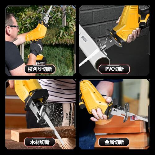 【強力な切断能力】 装載された高精度純銅ブラシ付きモーターにより、ストローク数は簡単に3000rpmに達します。電動のこぎりの切断能力は以下の通りです:木材:15cm,PVC管:15cm,軟鉄管:10cm,軟鉄材:3mm厚。高炭素鋼ブレードと21V大容量バッテリーを組み合わせることで、従来製品と比べて切断速度が約50%向上します。