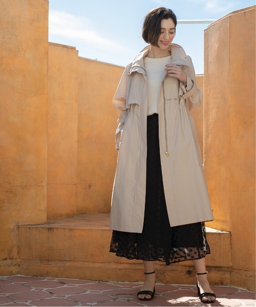 キーワード:トレンチコート コート レディース ナイロン ロング丈 無地