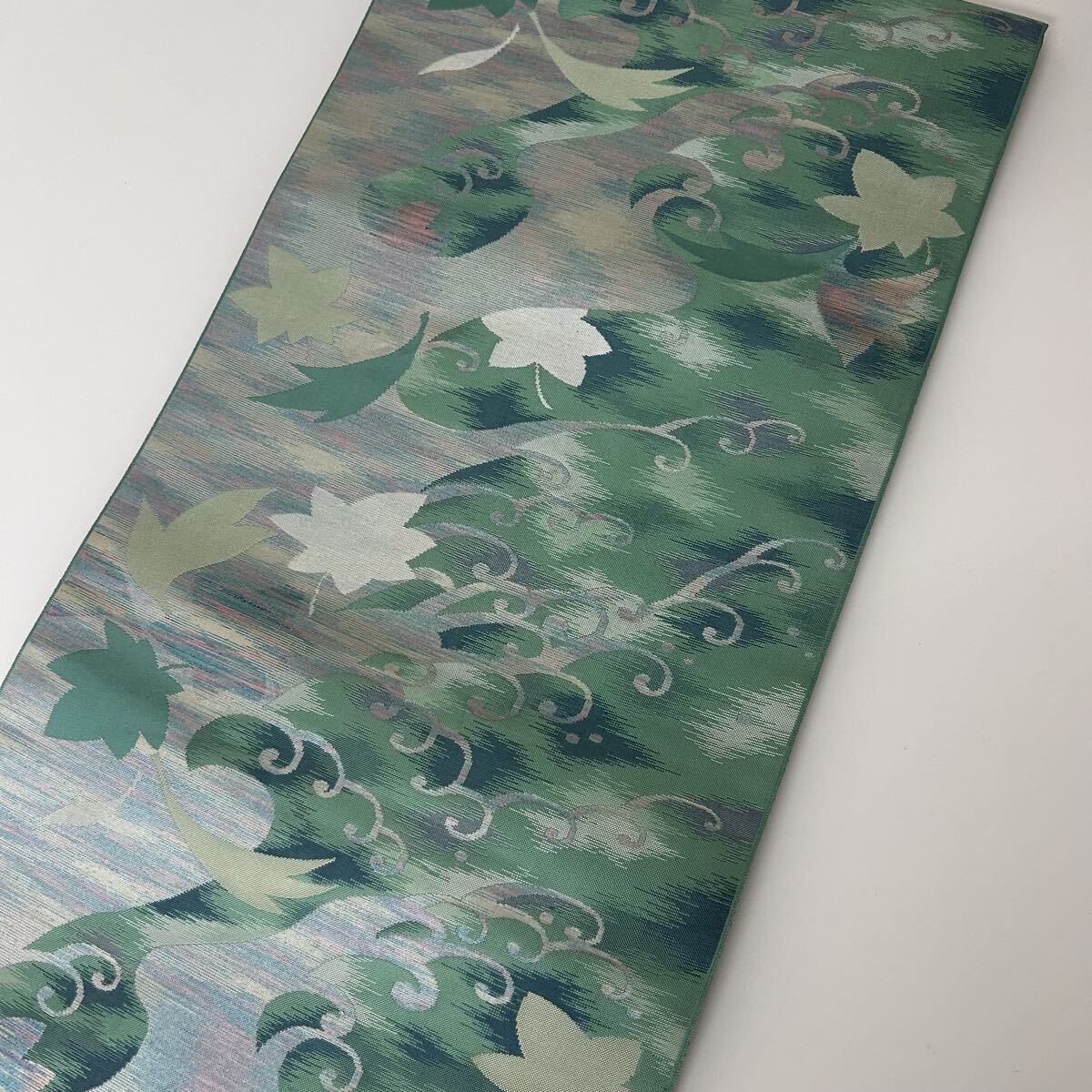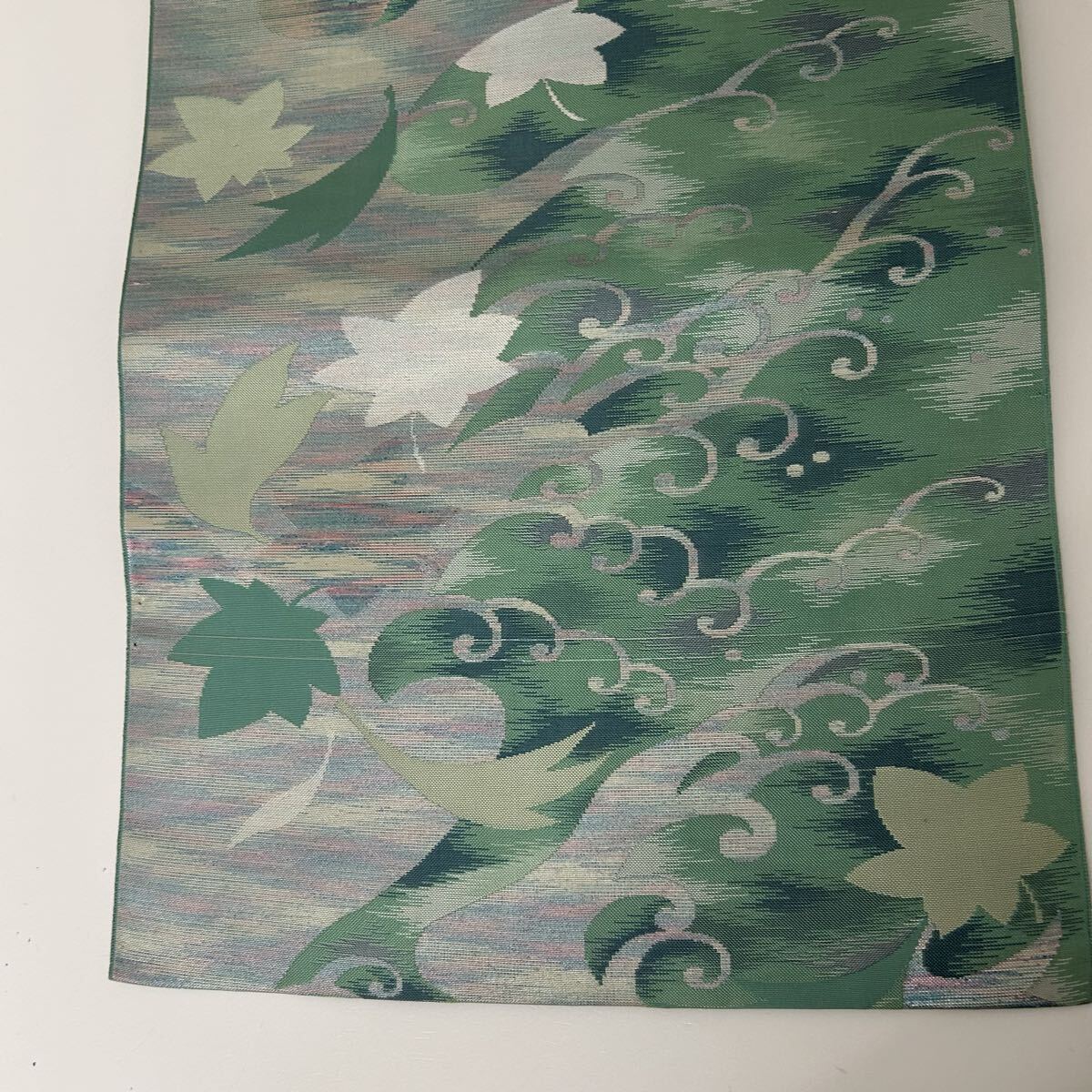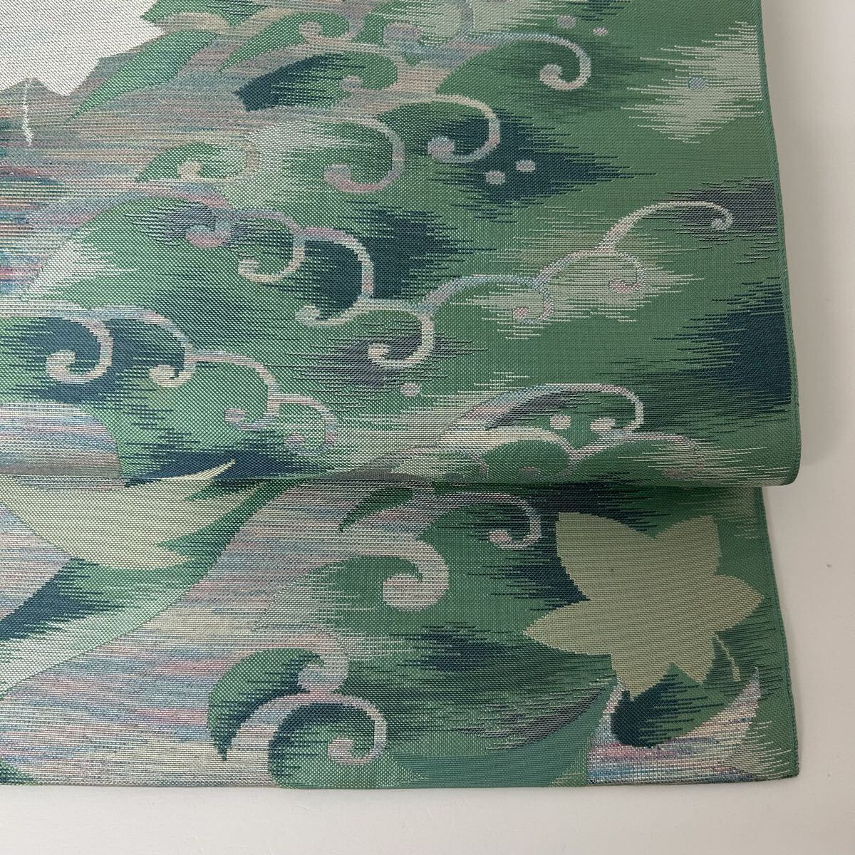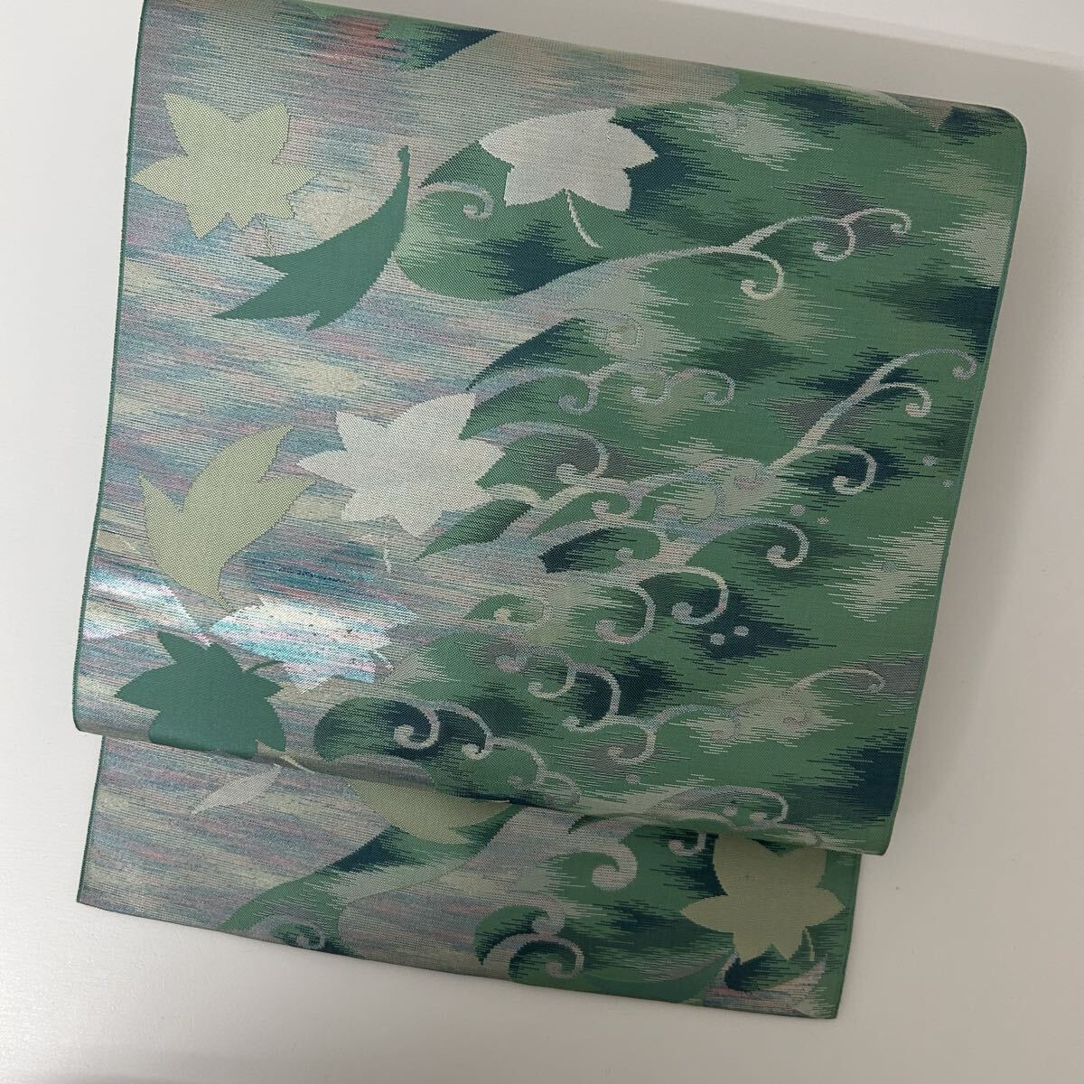 名古屋帯 正絹 紬 ライトグリーン 八寸 KK-2678 【楓】