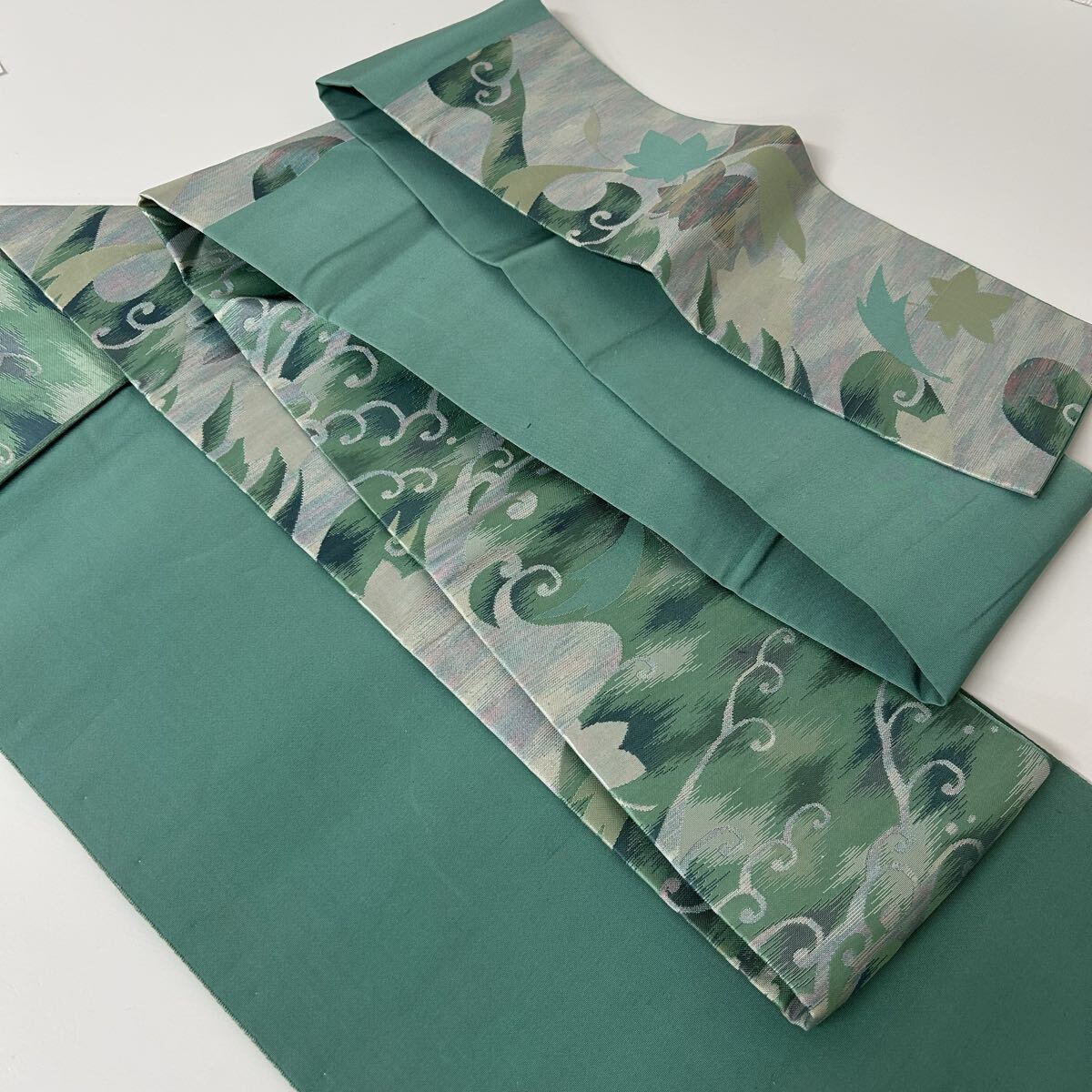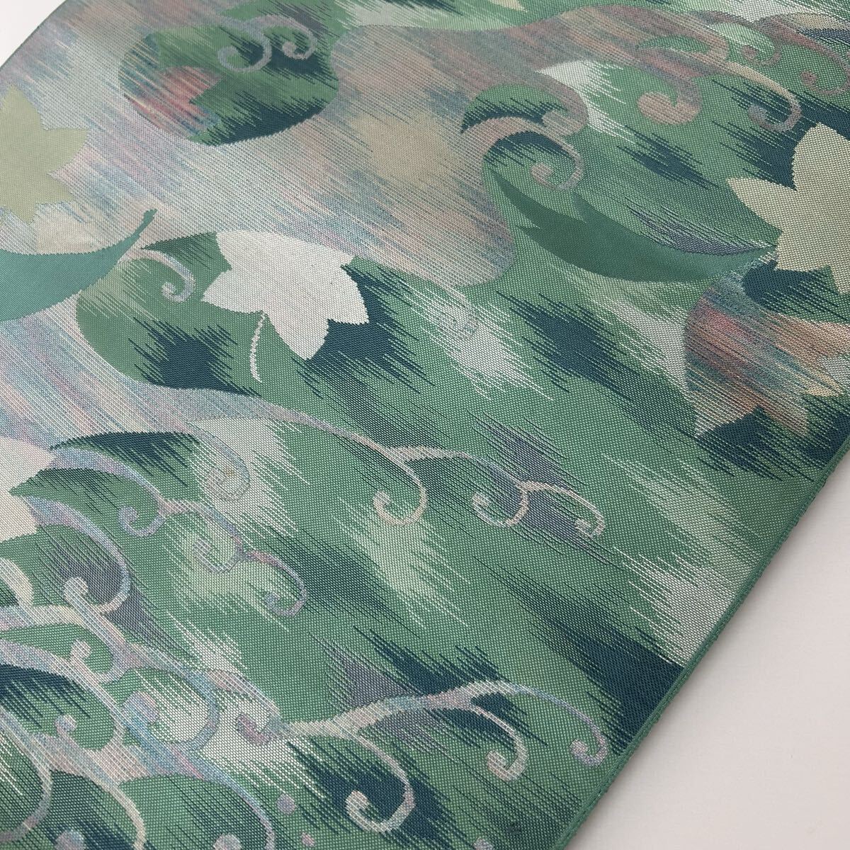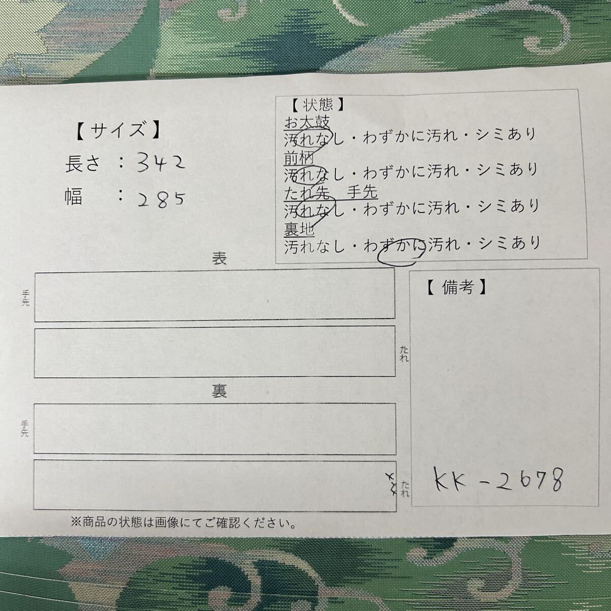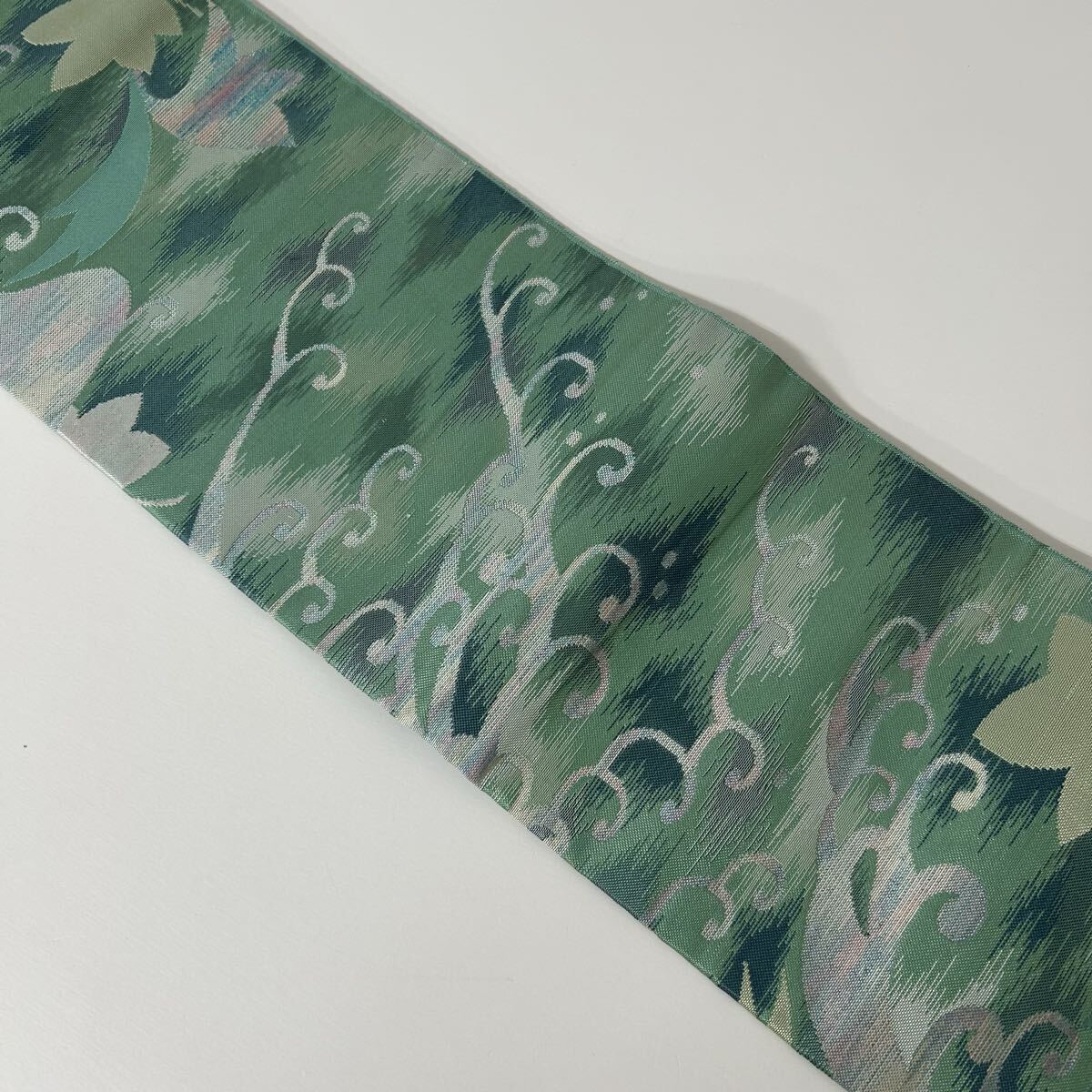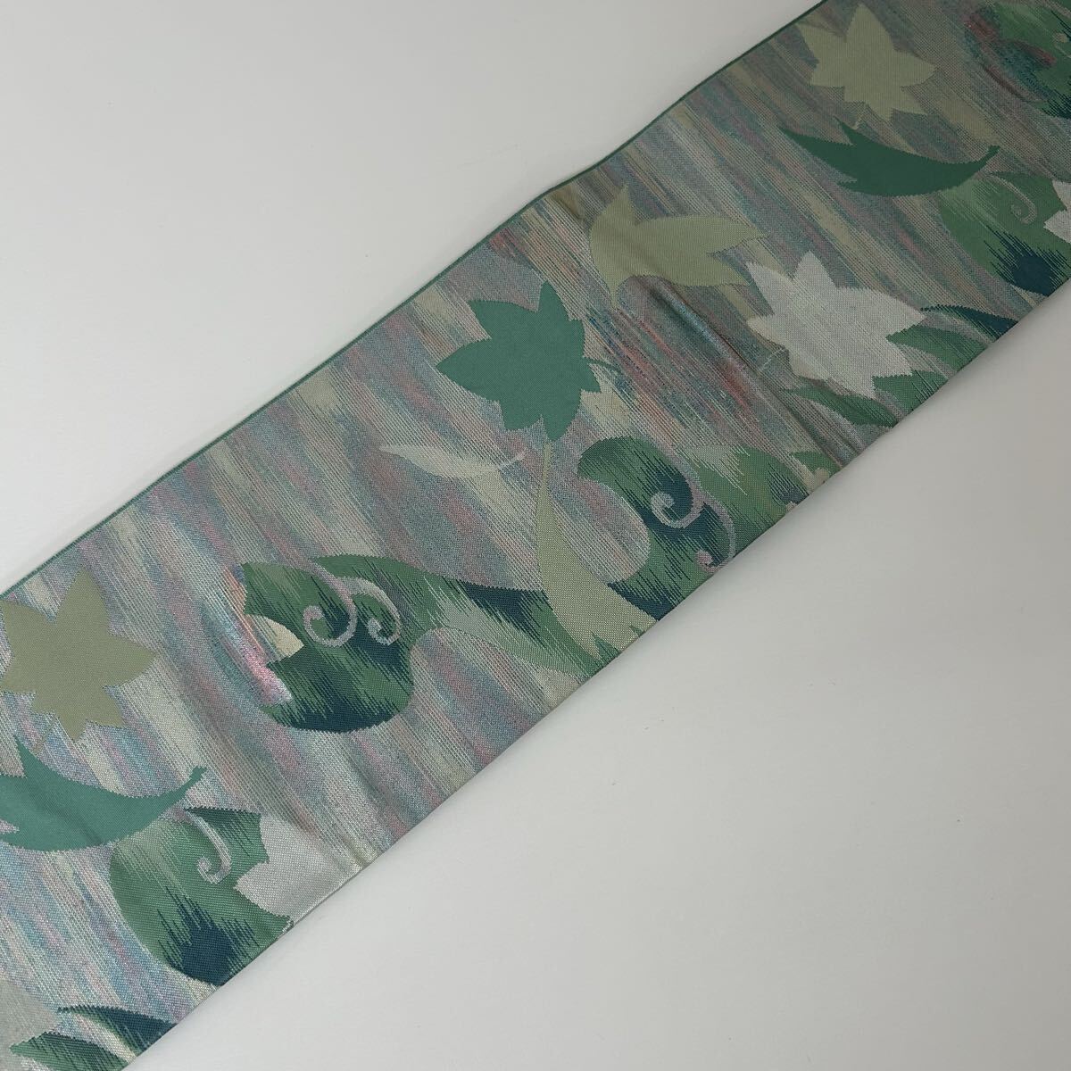 名古屋帯 正絹 紬 ライトグリーン 八寸 KK-2678 【楓】