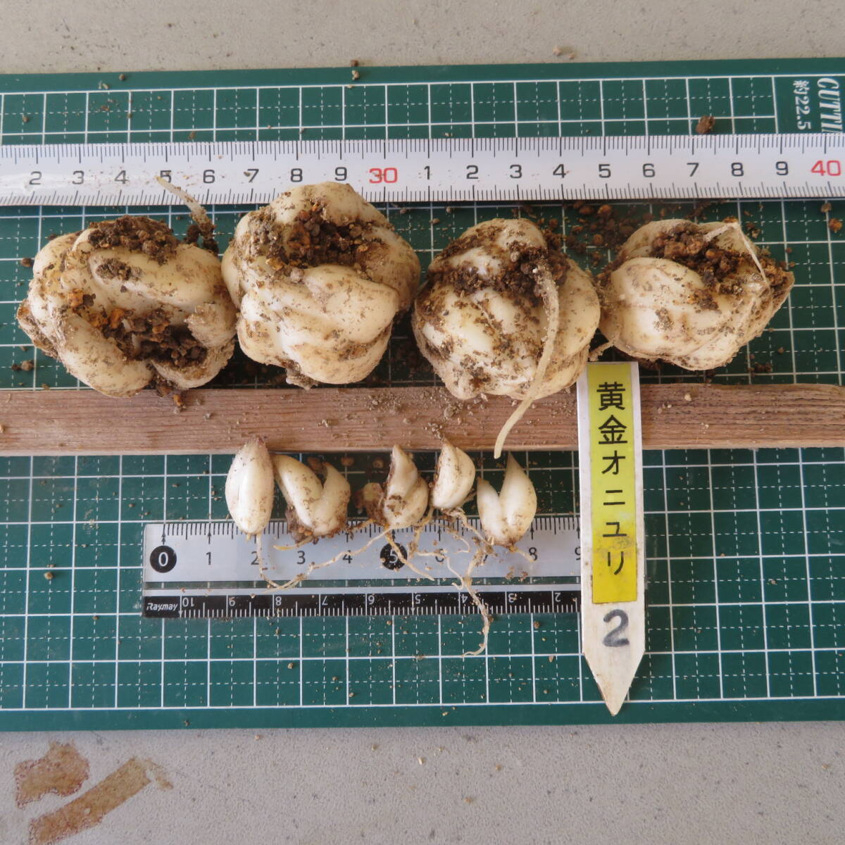 開花予定球 4球、 ムカゴから2年経過球 5球