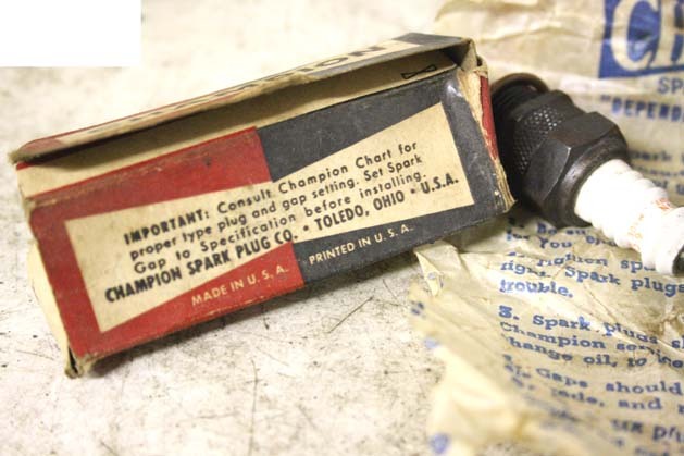 1950s、60sのチャンピオン製純正、デット未使用、箱入りのままのプラグ、元箱、説明書付き2本1セットです。