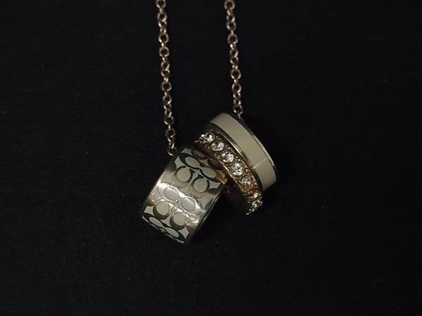 COACH コーチ ミニシグネチャー ラインストーン ネックレス ペンダンド アクセサリー レディース ゴールド系×アイボリー系 DK6488