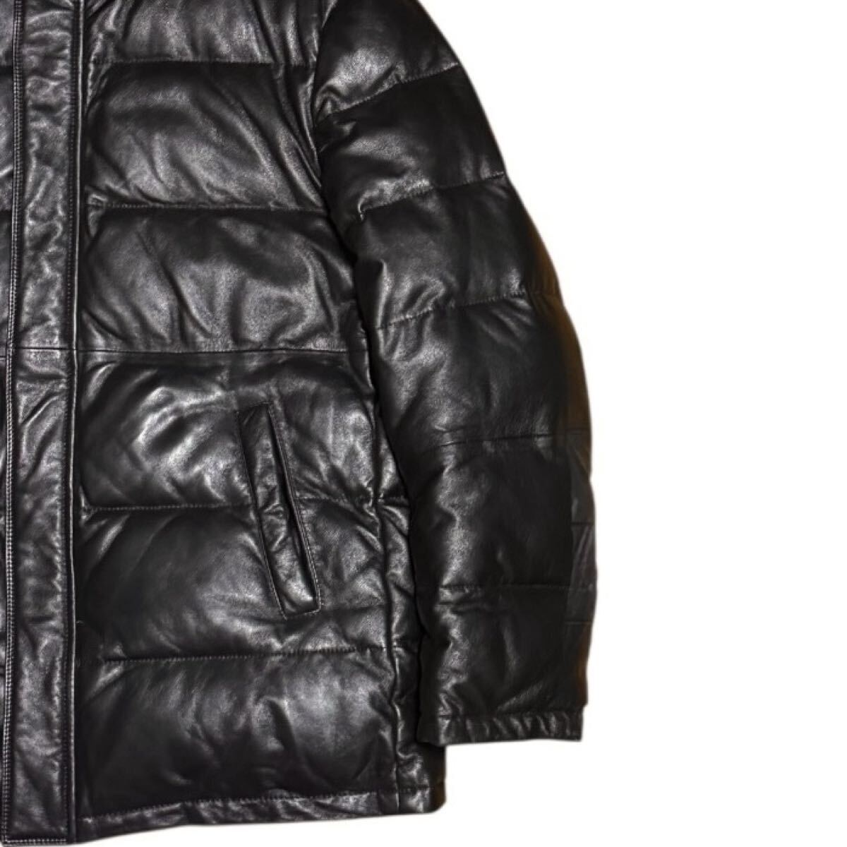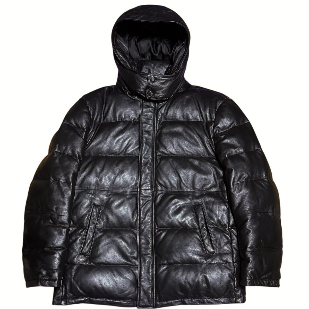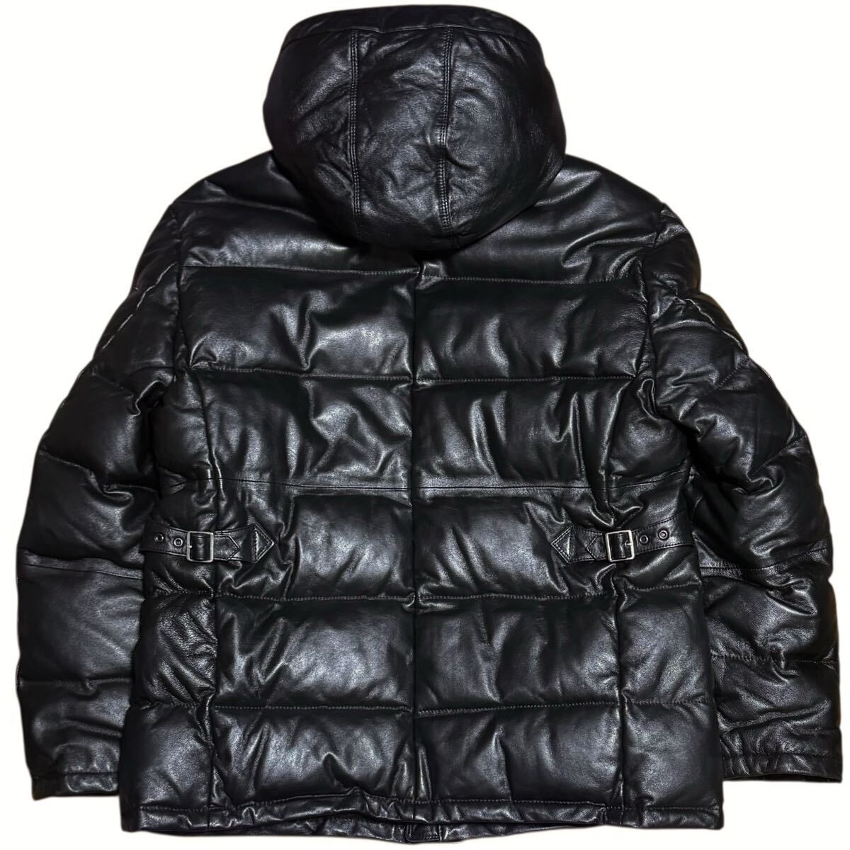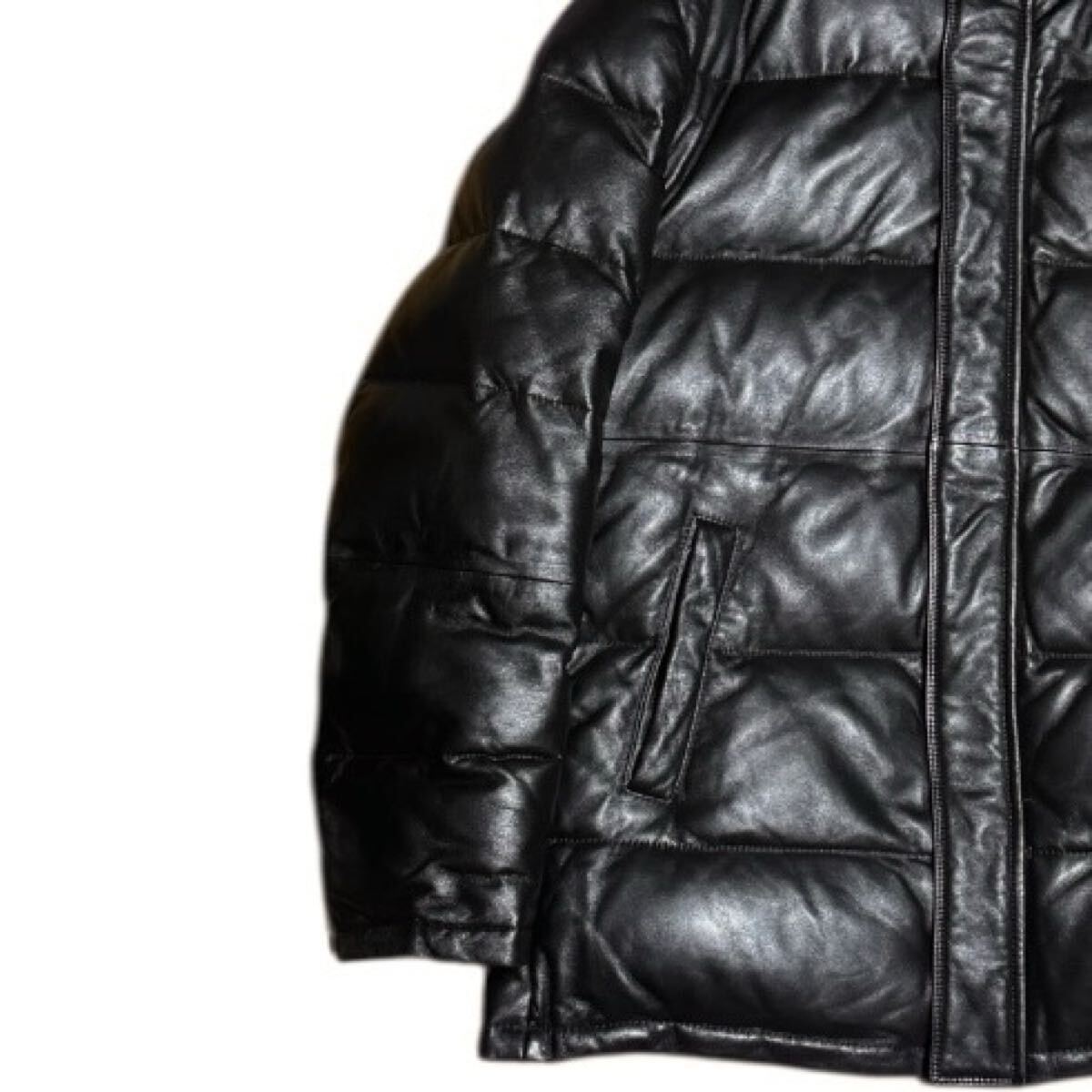 【雰囲気抜群/ビッグサイズLL】Haruf 羊革 W-ZIP フード着脱式 レザー ダウンジャケット ブラック 比翼 ミドル丈