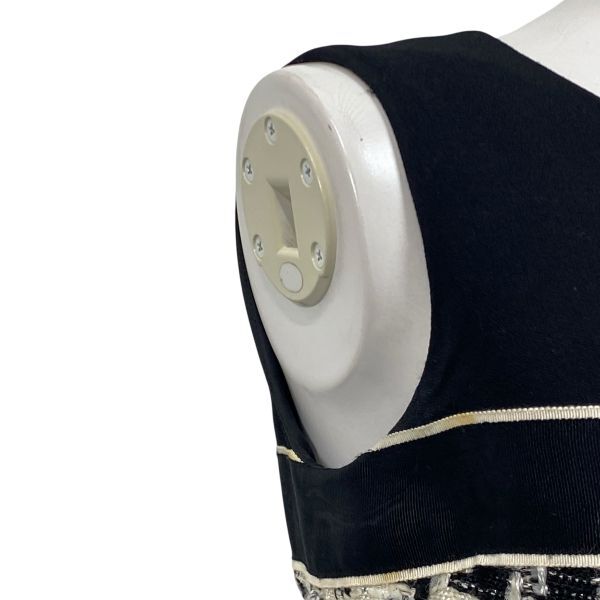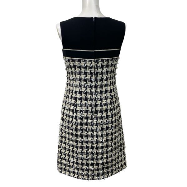 ツイードワンピース 膝丈 ノースリーブ リボン ワンピ ひざ丈 千鳥格子