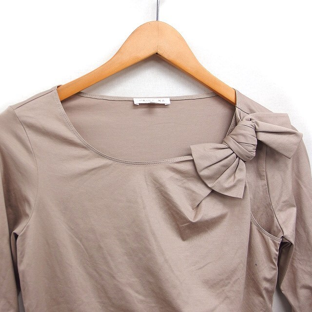 ポールカ PAULE KA リボンカットソー Tシャツ 7分袖 ボートネック 無地 コットン 綿 M ベージュ /FT28 レディース