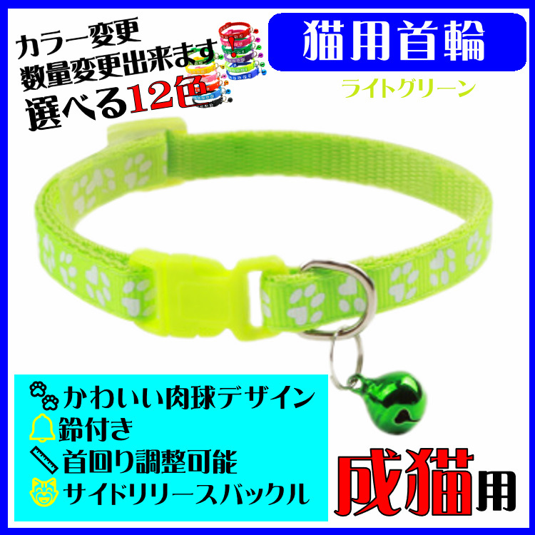 | ★☆(C71-9) 猫の首輪 成猫用 肉球のデザインが可愛い猫用首輪【ライトグリーン】☆★ | |