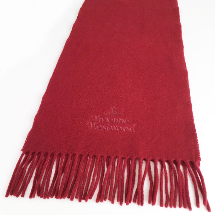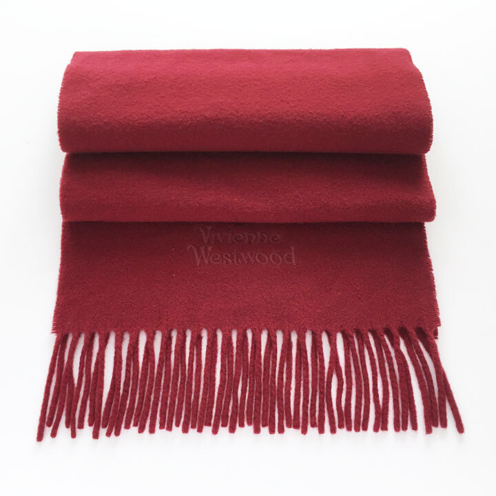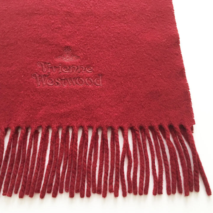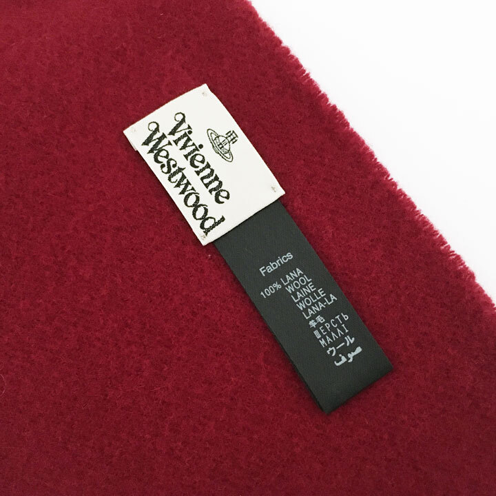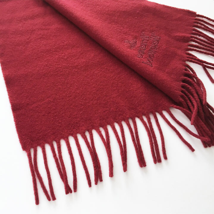 ヴィヴィアンウエストウッド / Vivianne Westwood マフラー エンジ ロゴ刺繍 ラムウール100%【6332】